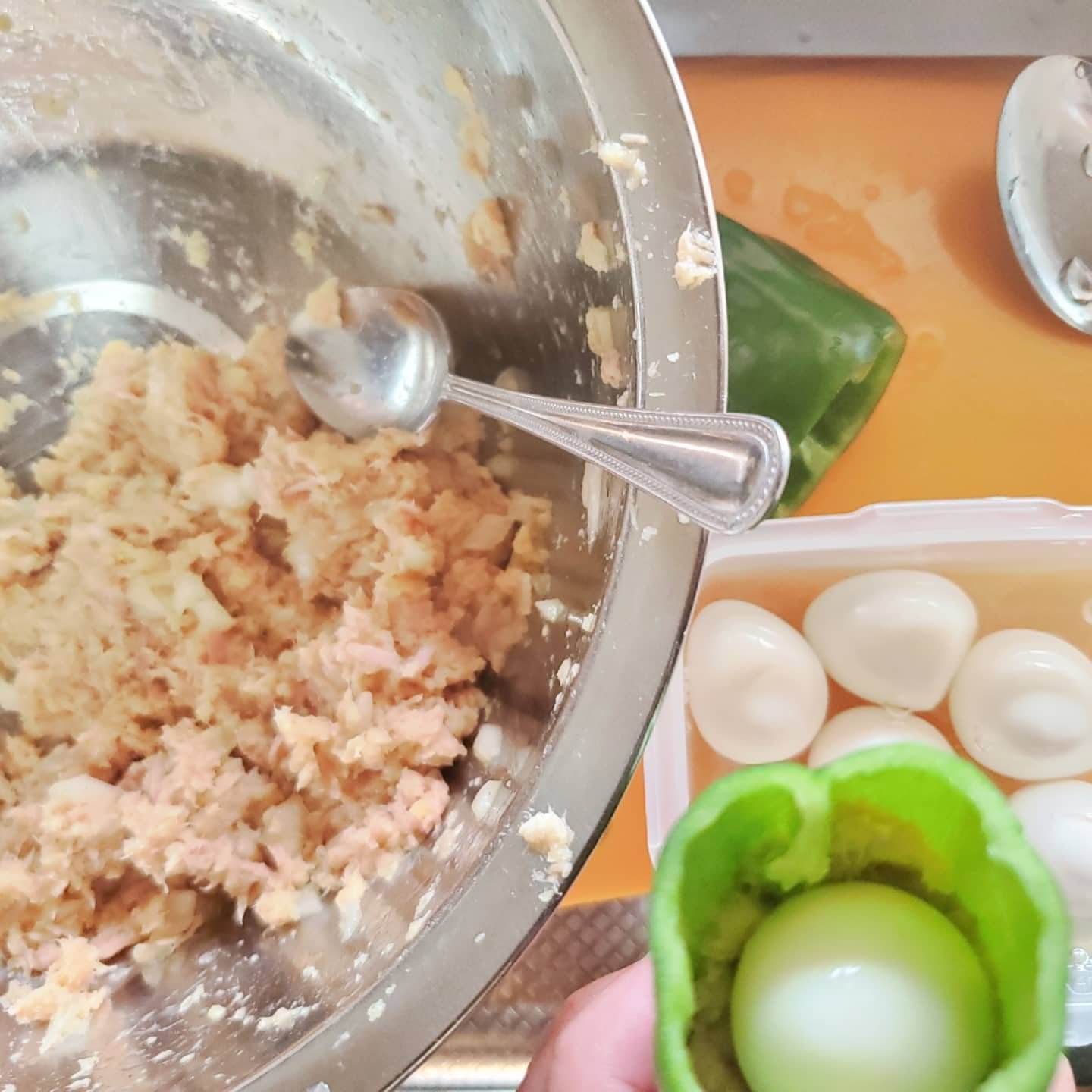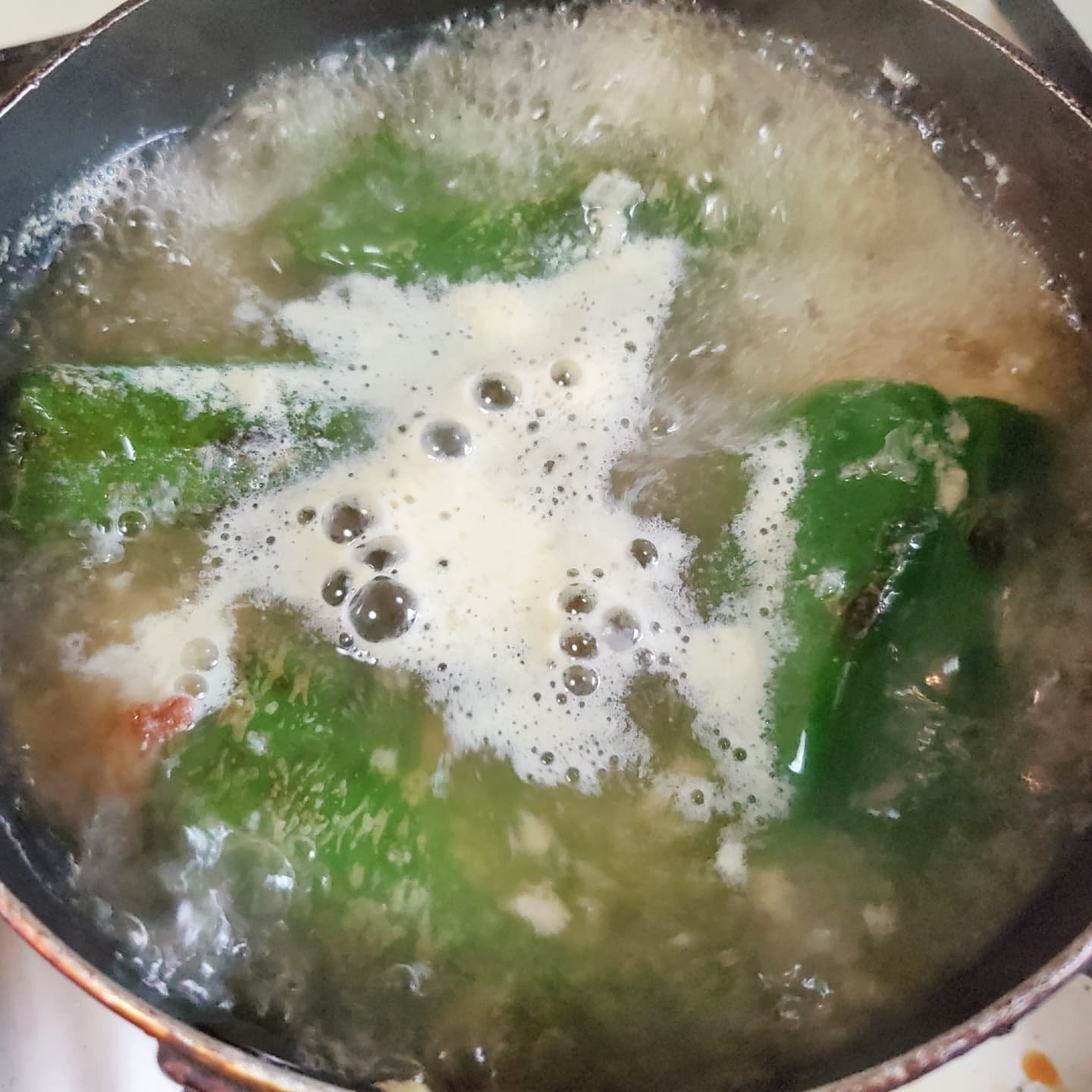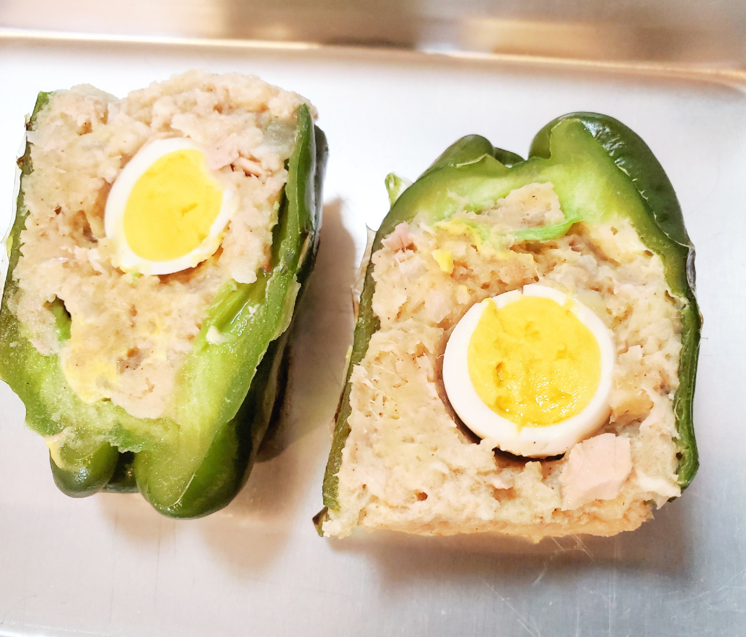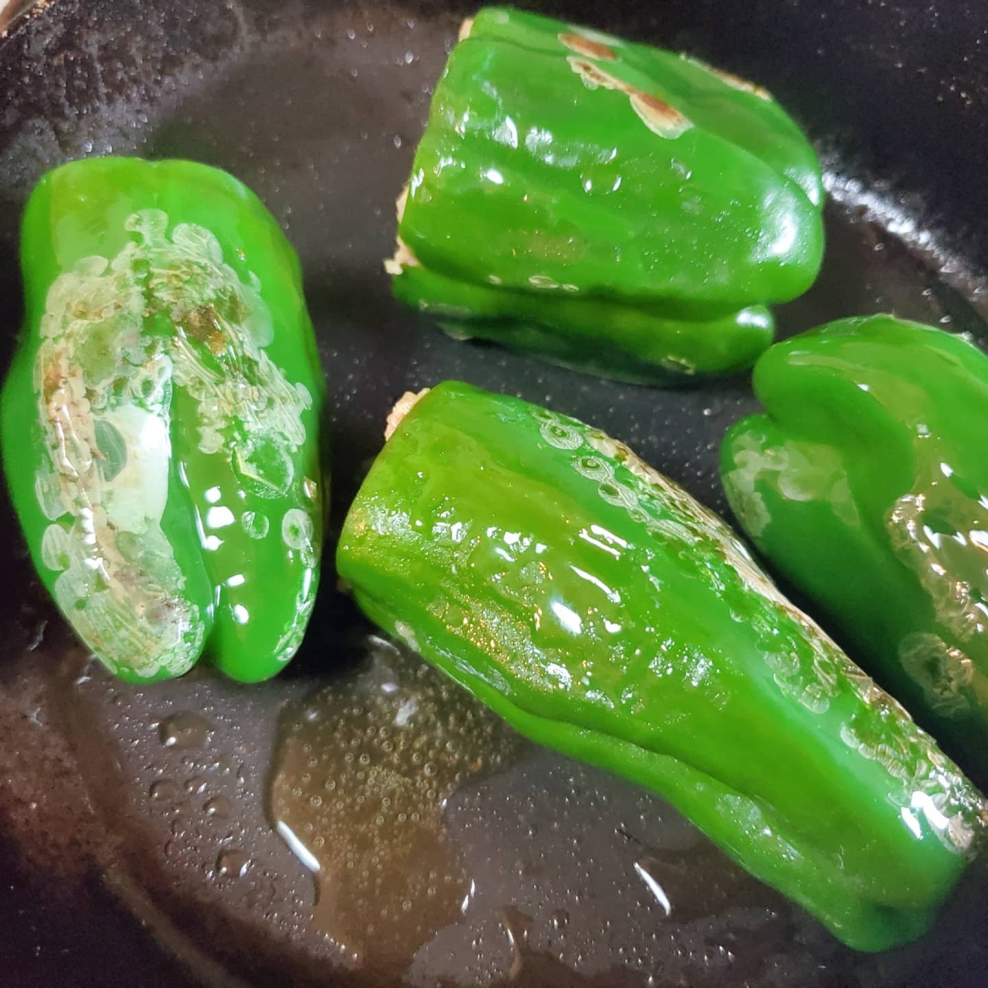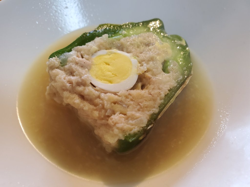 ピーマンに詰めて煮込み仕立てにしてみます。