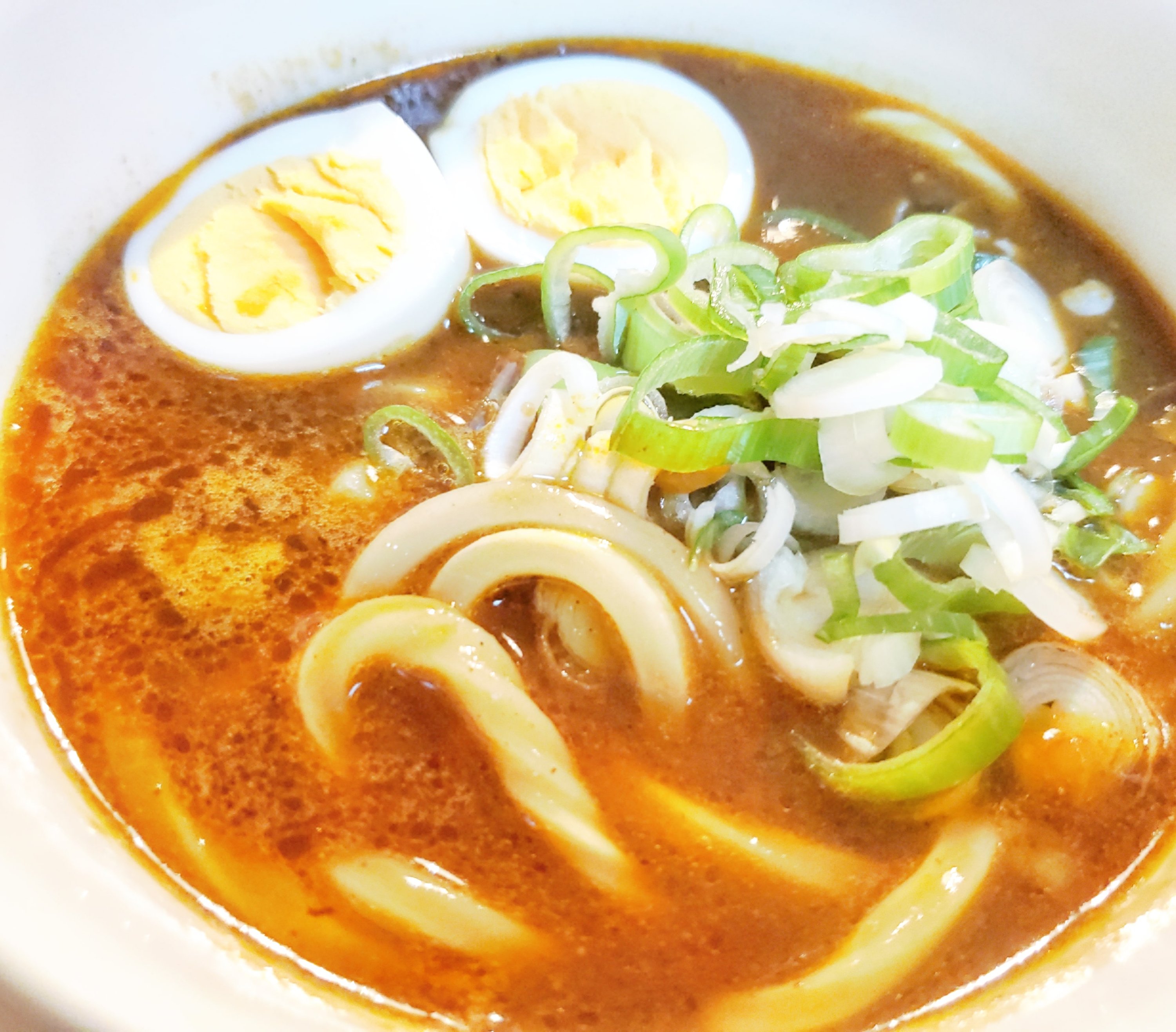 とろみのあるカレーをベースにしているので、めんつゆを足してもつゆはぽってりした感じです。