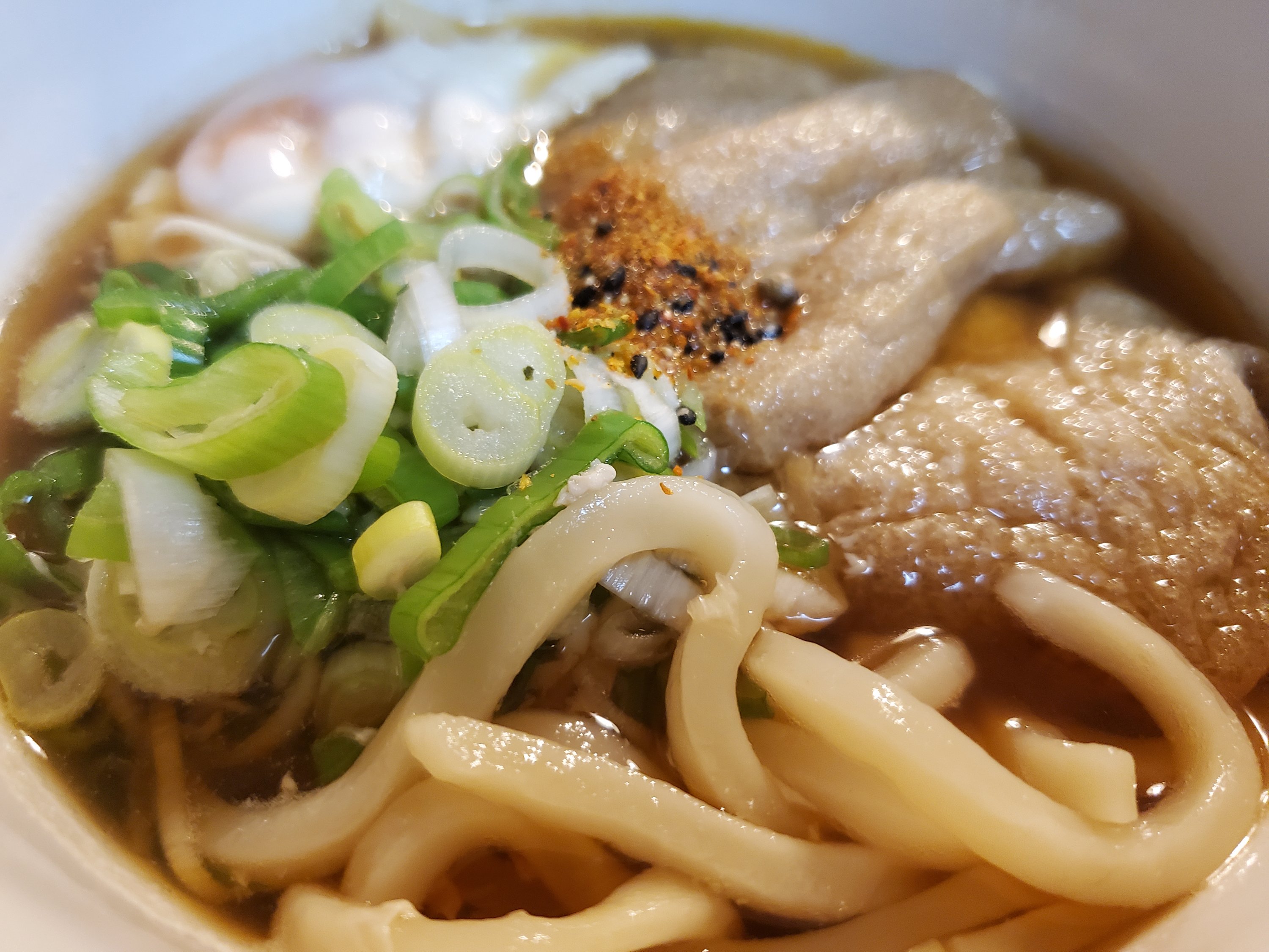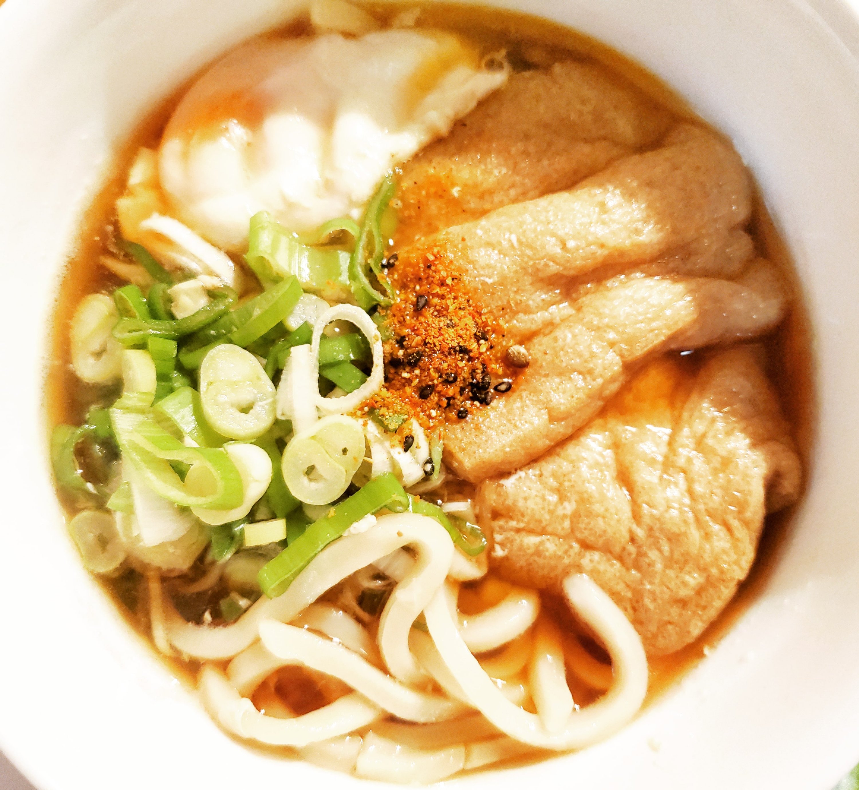 我が家ではお揚げを甘辛く煮たものを冷凍して常備しているので、うどんさえ茹でれば…のひと品なのです😋