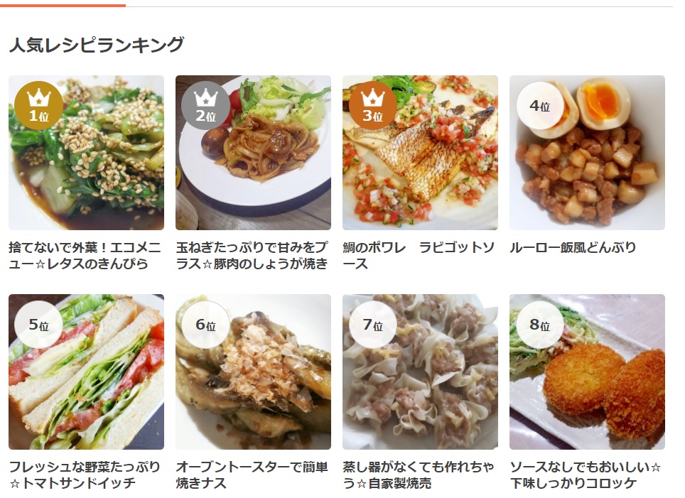 突然ですがここで9月1日現在の“トケイヤkitchen~楽天レシピ”の人気ランキングを紹介します。