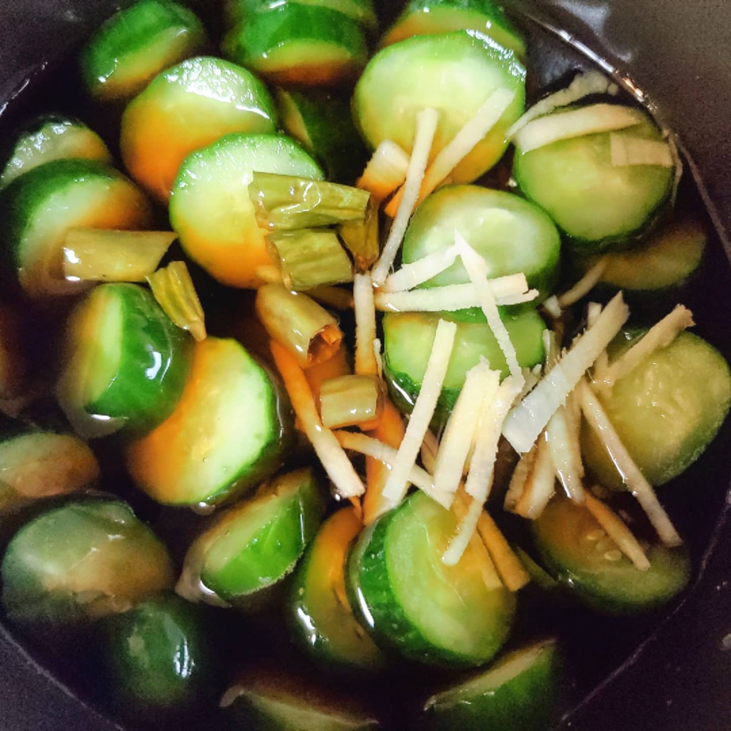塩もみして絞ることで、ぱりぱりとした食感がきわだって美味しいお漬物になりました。