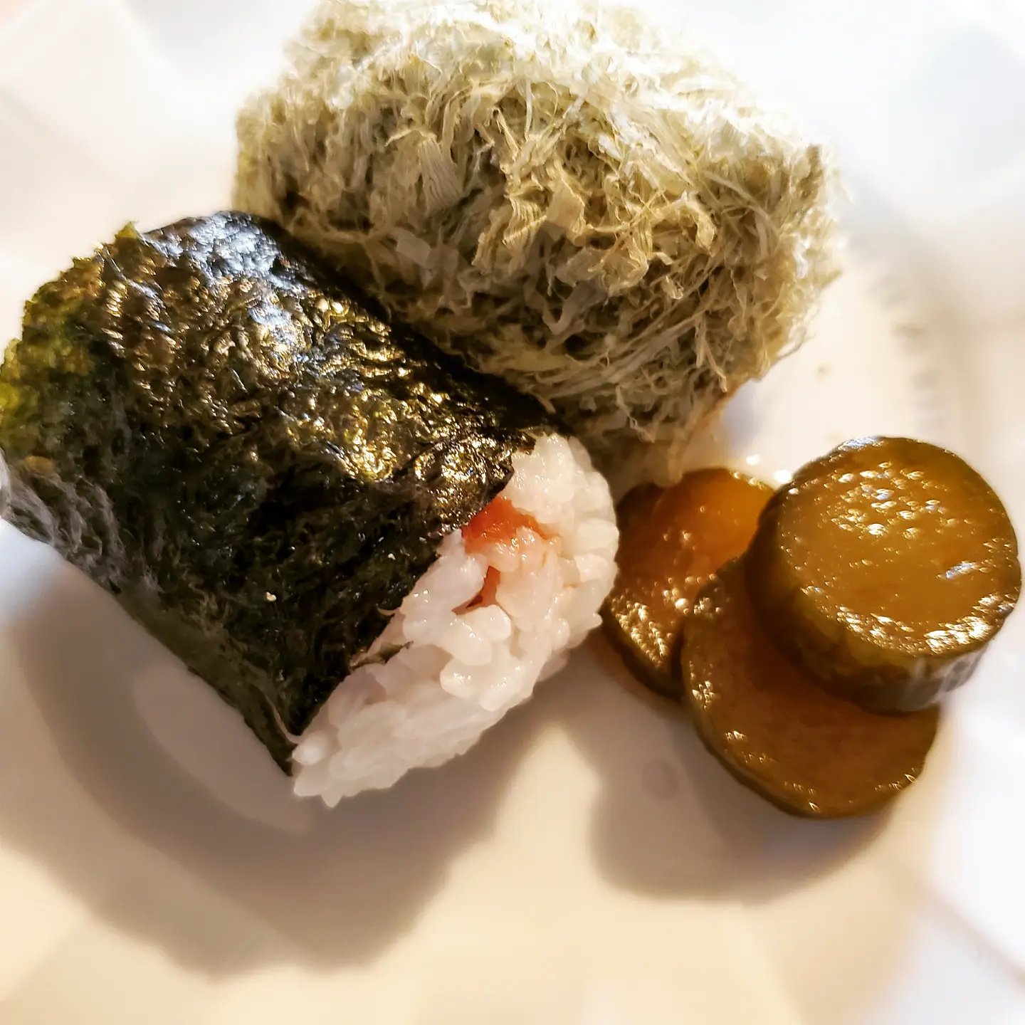 今回は久しぶりのおにぎりなので、懐かしくて俵型にしましたが、三角おむすびもいいですよね。