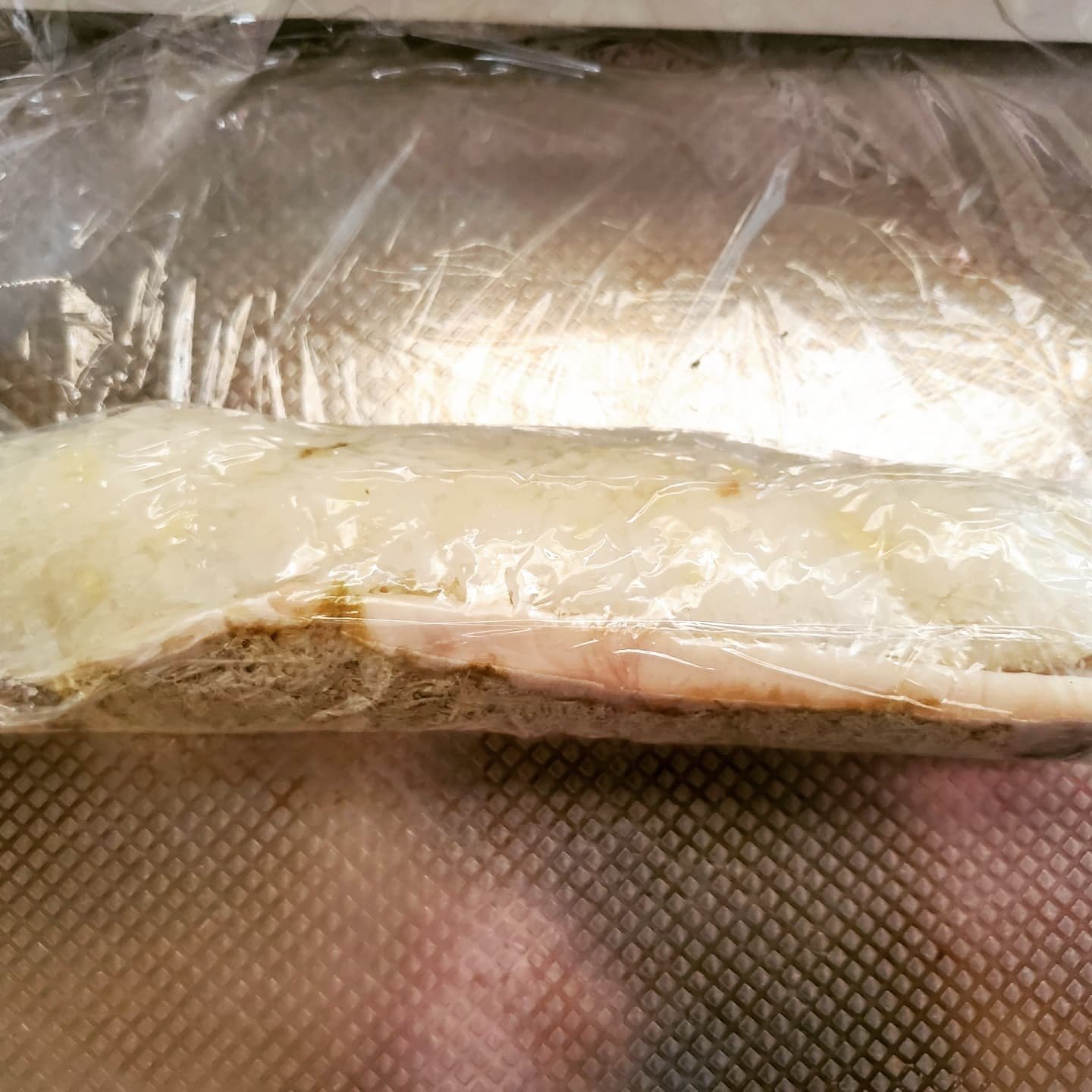 包み終わったら冷蔵庫で半日ほどおいて落ち着かせます。