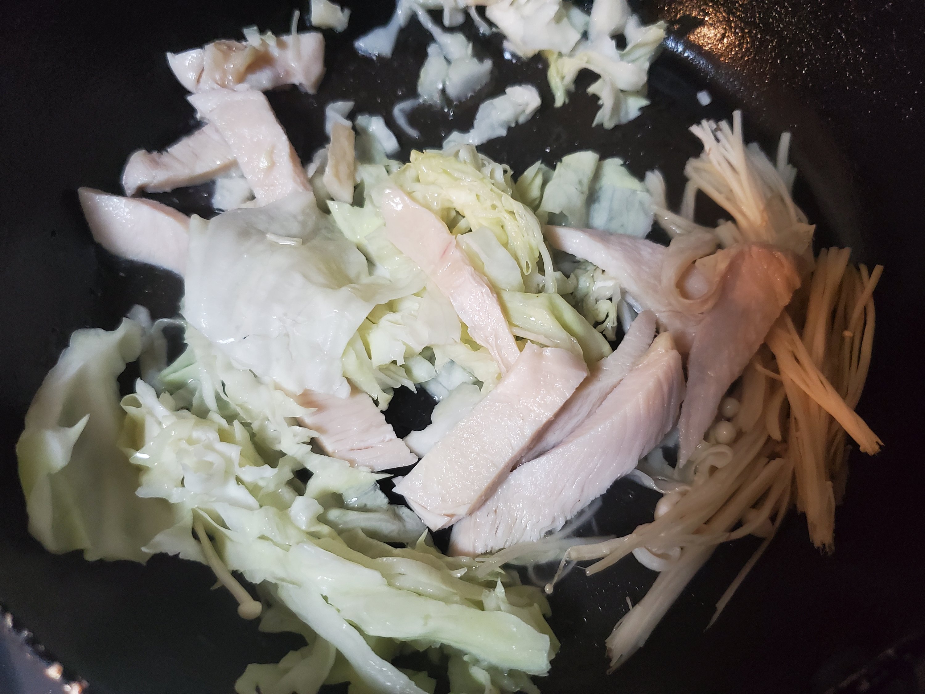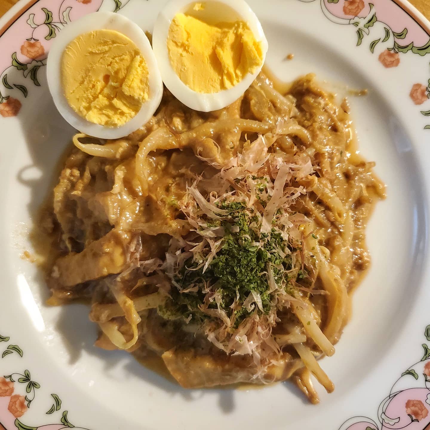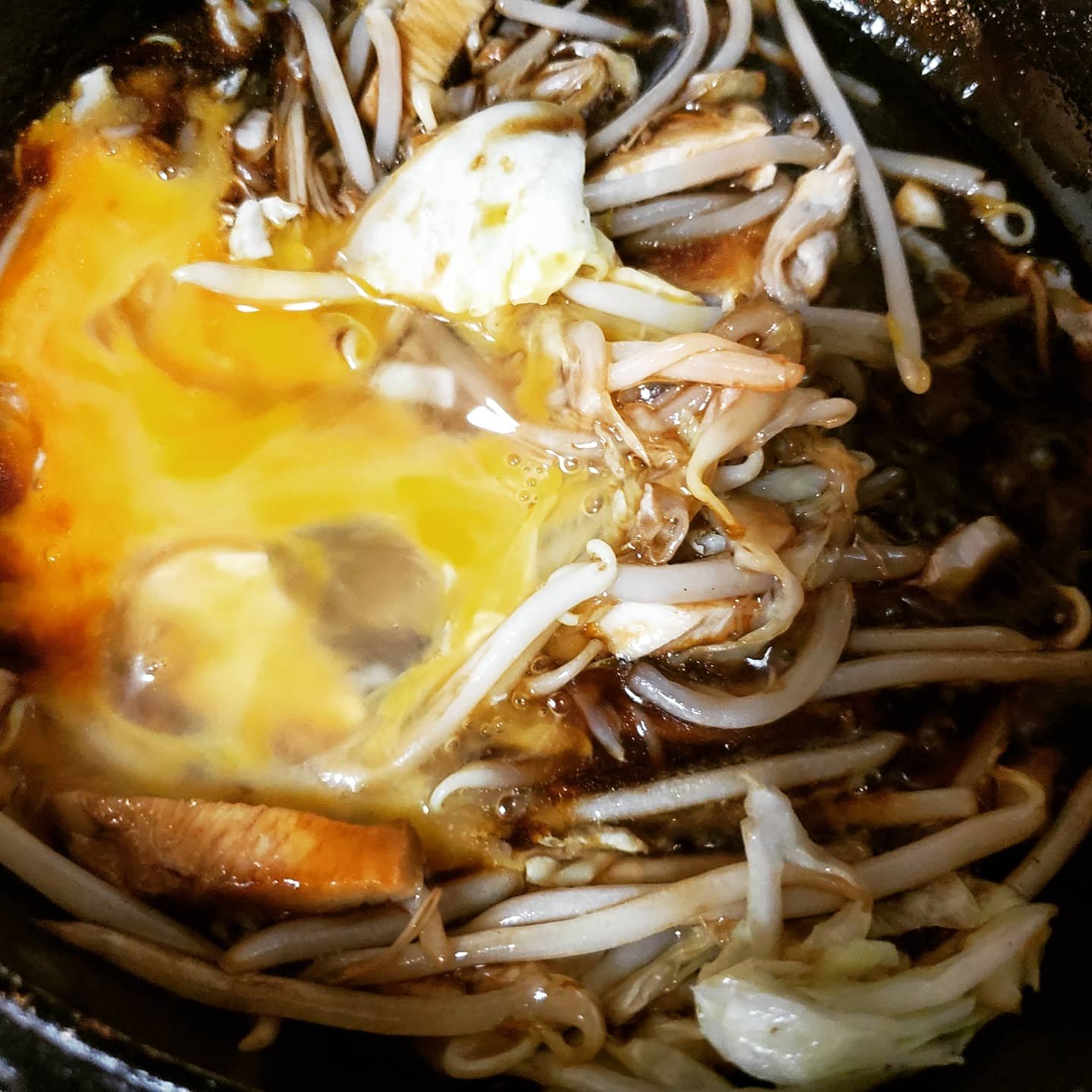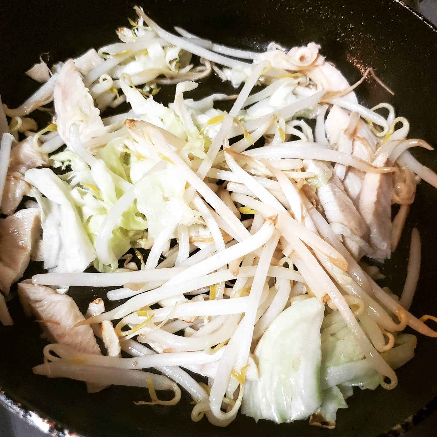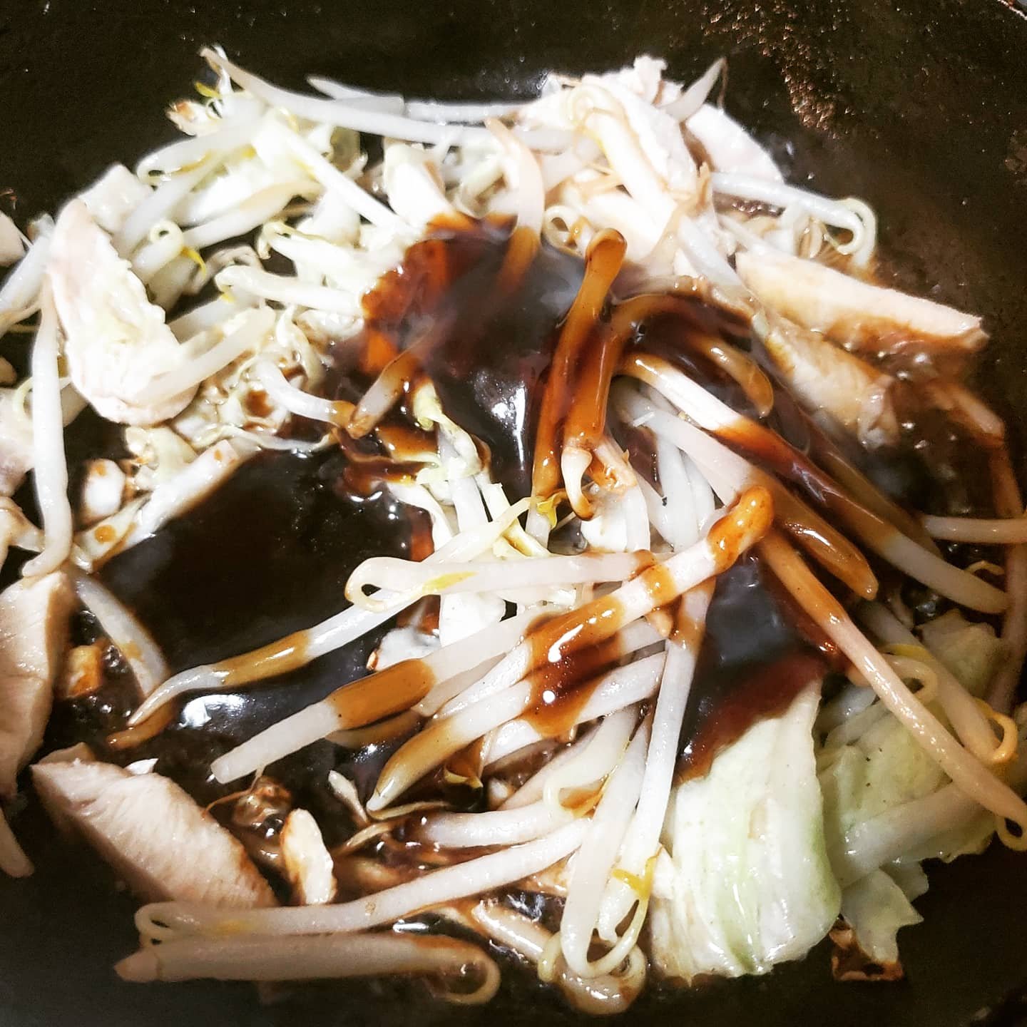 ただこのところ(というかコロナ禍のこの一年)運動不足で、ちょっとウェイトオーバー気味なので、そば抜きでもやしをそばに見立ててたっぷり入れて作ってみました。