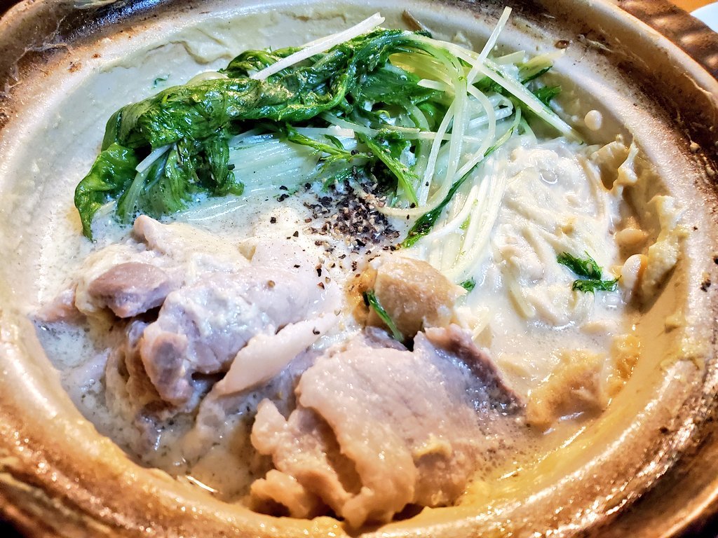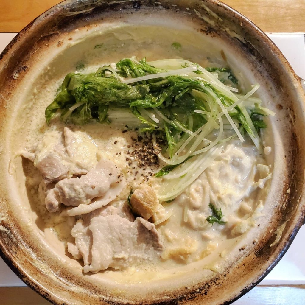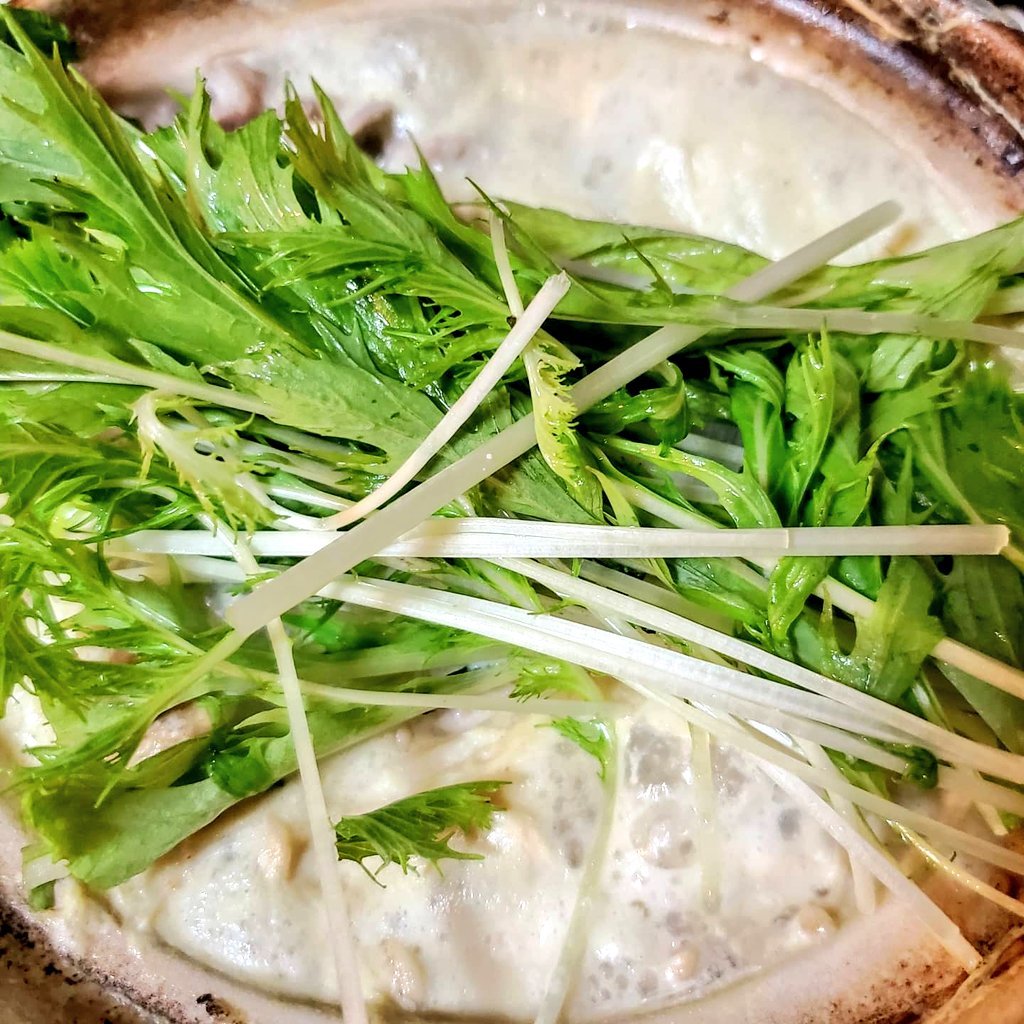 仕上げにみず菜でハリハリ食感を加えた食べ応えのあるお鍋です。