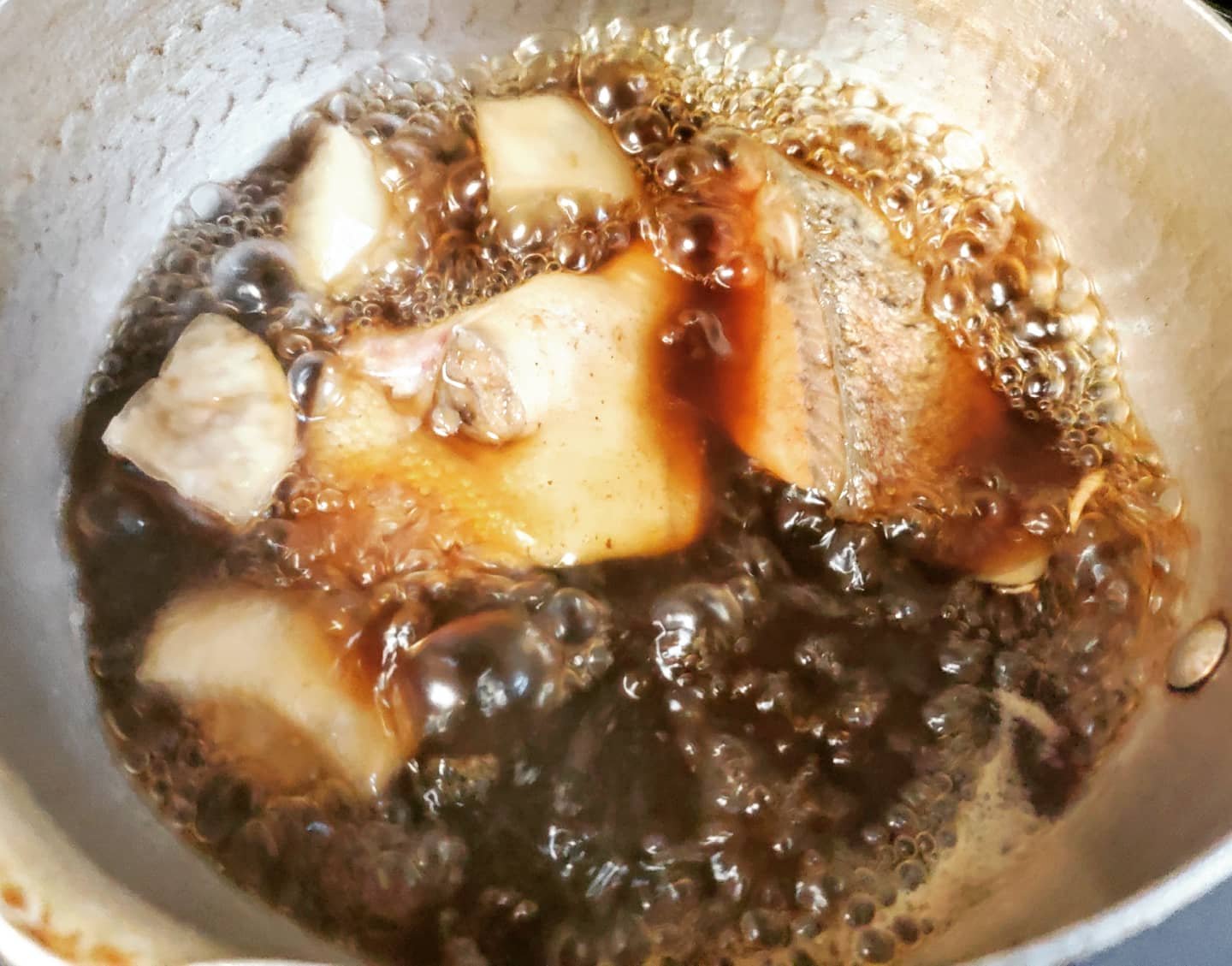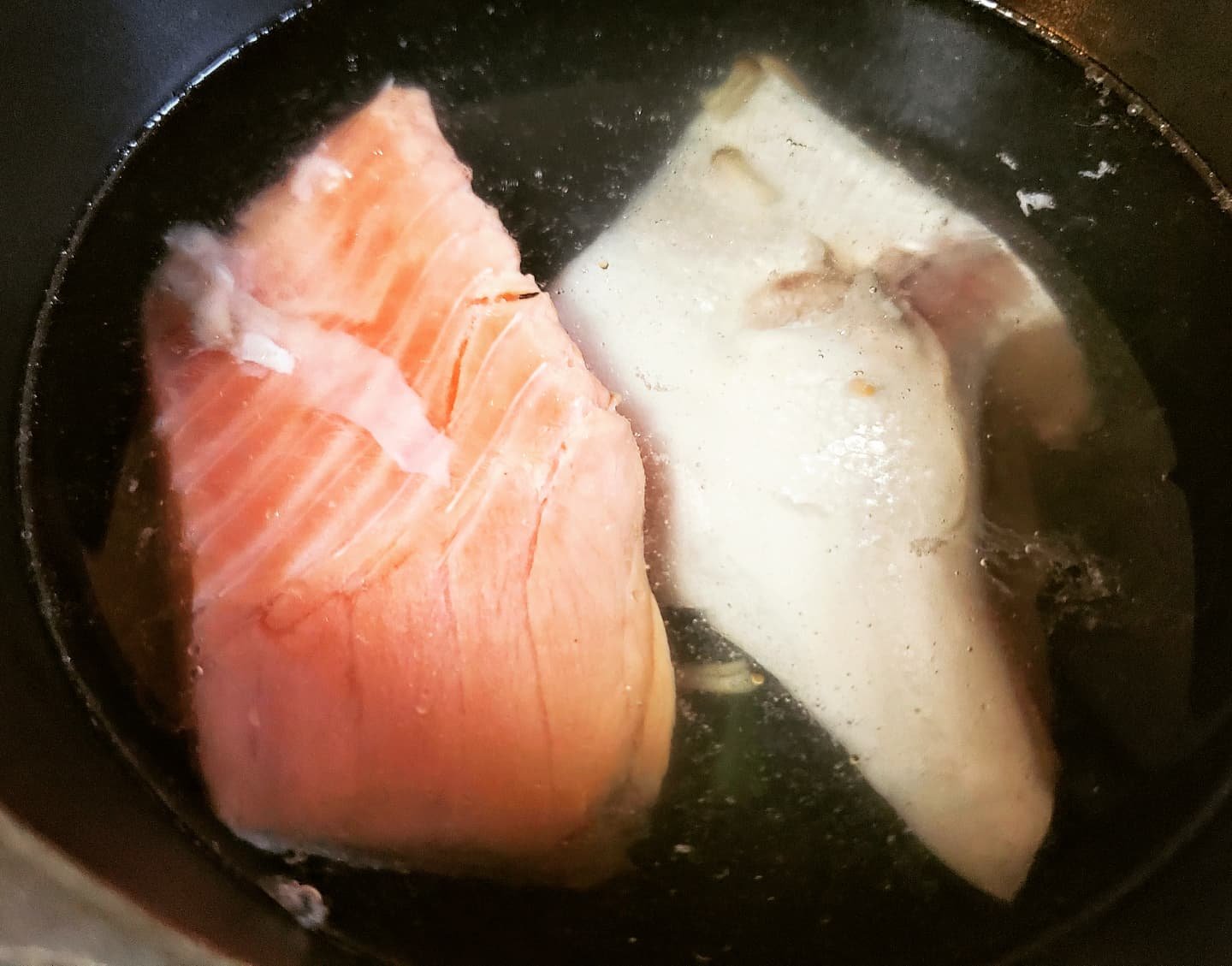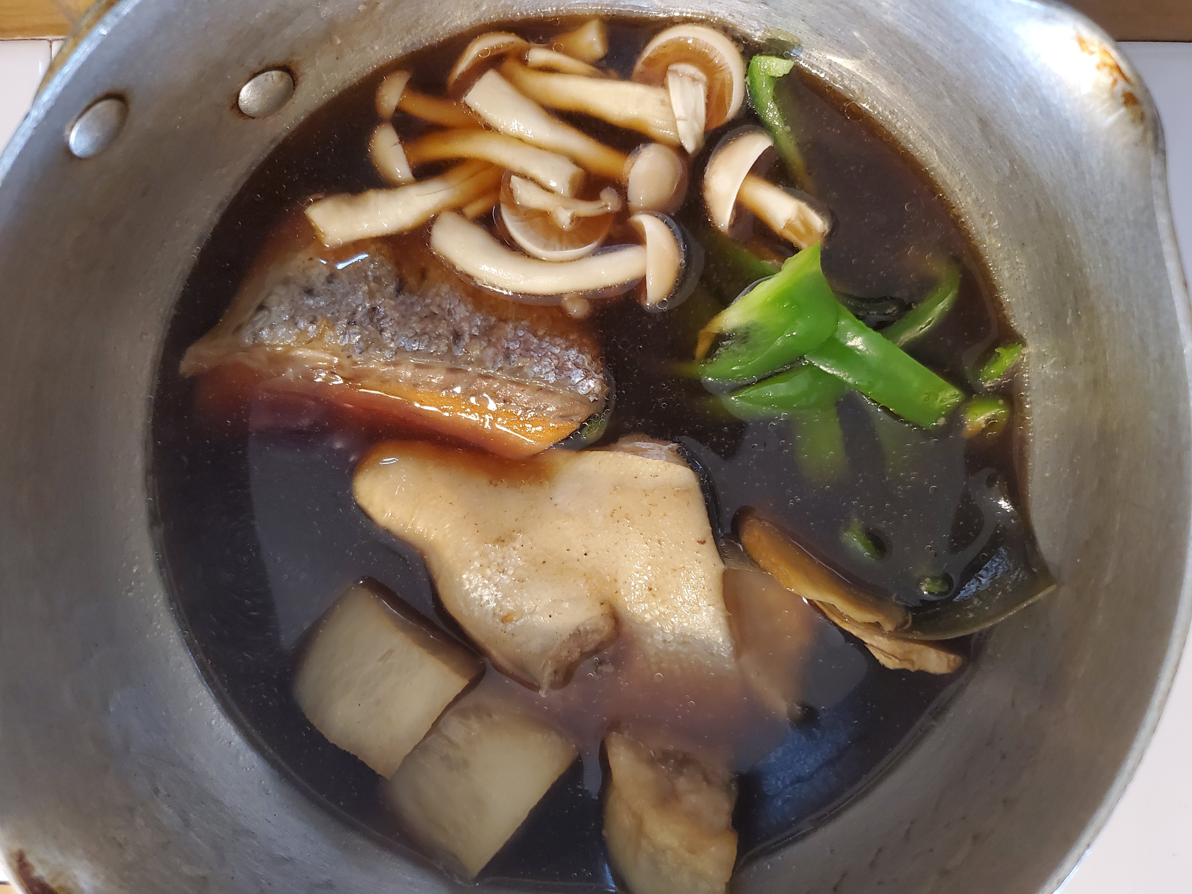 鮭のアラを手に入れたので、大根と一緒に煮ものにしてみました。