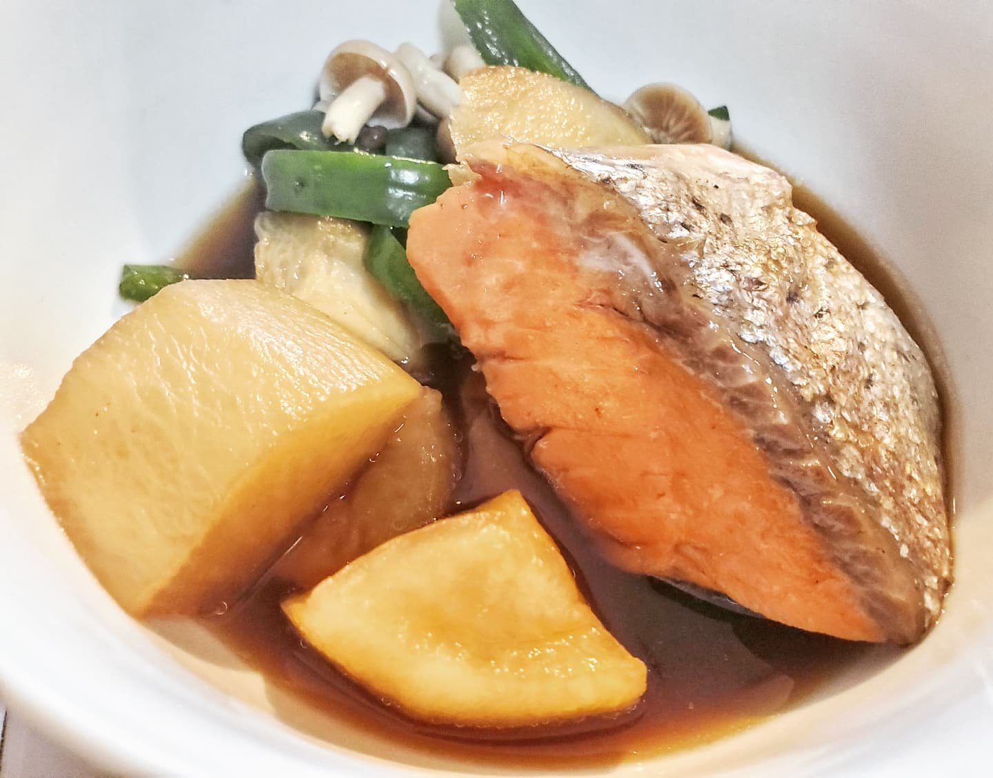 食べる前に温めなおせば、しっかりと大根に鮭の旨味が染みた煮物の出来上がりです。