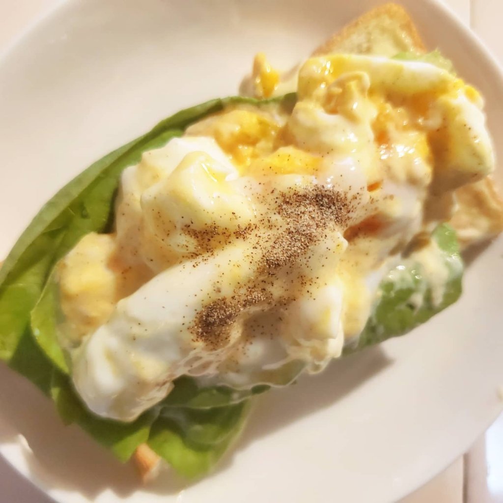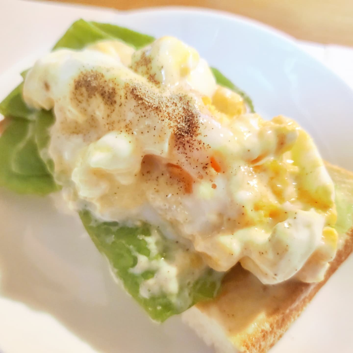 朝の時間を短縮したいときに、ゆで卵を作るのは時間がかかるので、この方法でオープンサンドスタイルのトーストにするのがお気に入りです💛
