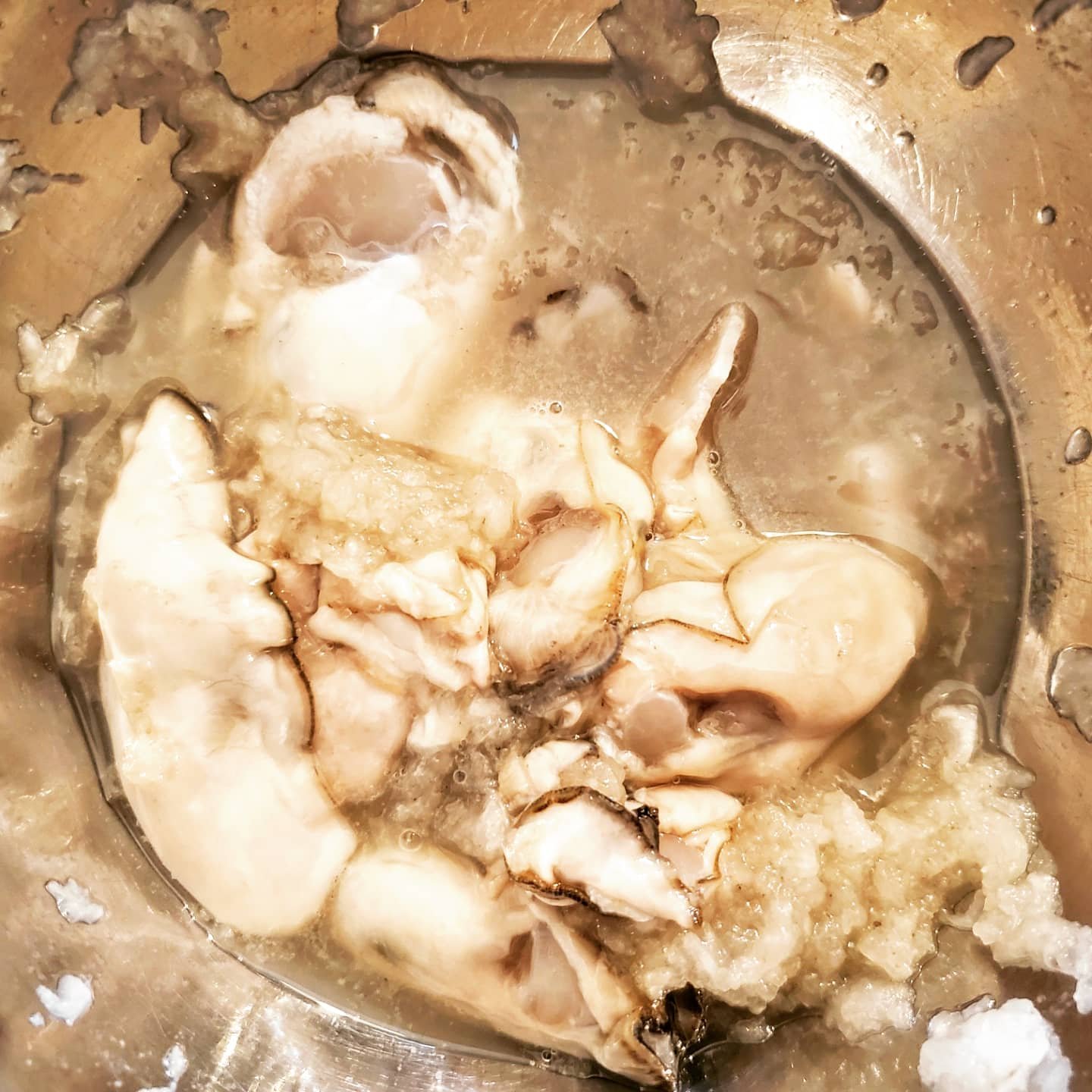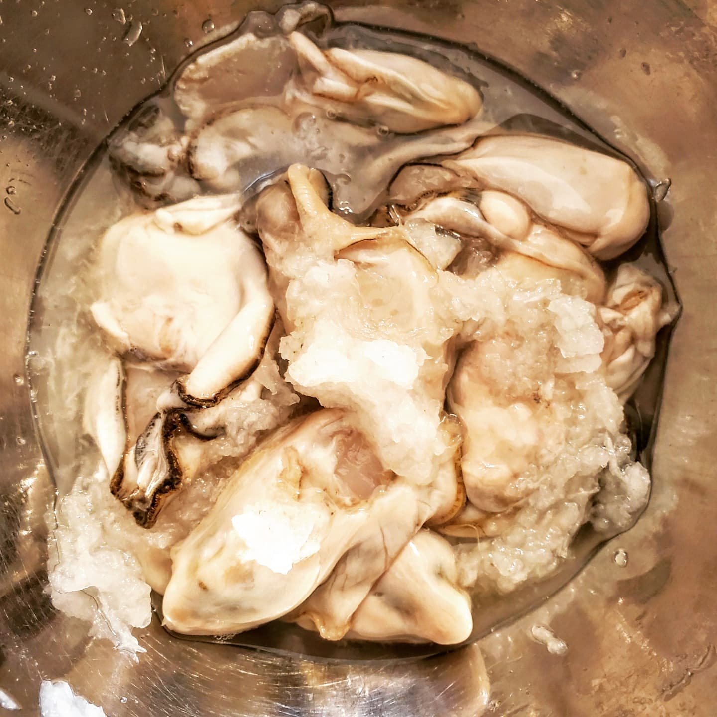 貝類ってけっこう汚れが多いらしいので、しっかりと下処理をしておきます。