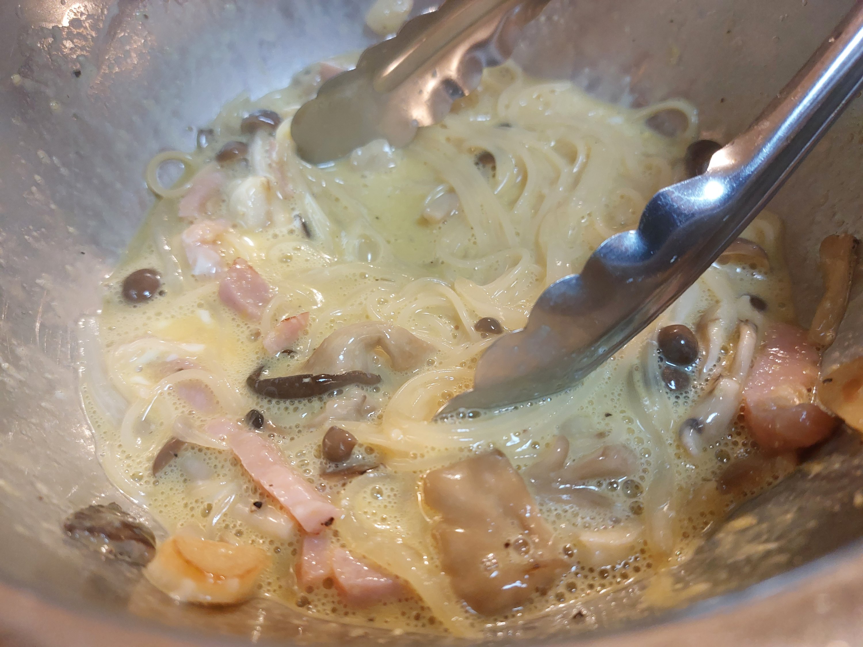 生クリームを使うのはこのとろみを出すためだと思うのですが、卵にゆっくりと熱を加えることで、うまくできるので、ぜひ試してみてください😋