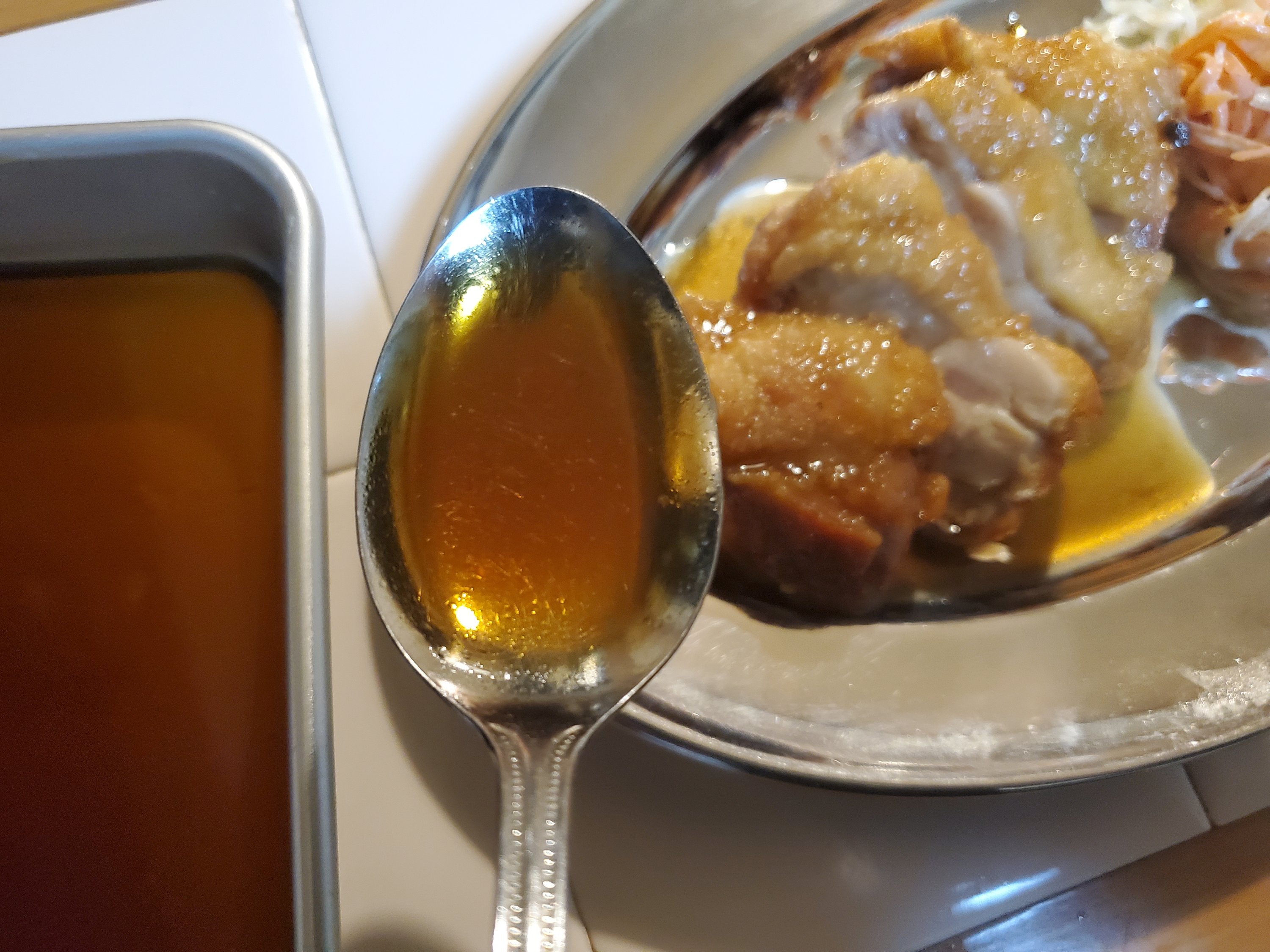 チキン南蛮といえば上にたっぷり載せたタルタルソースが目立ちますが、それを引き立てるいい仕事をするのが、揚げたチキンを絡める甘酢醤油。甘酸っぱいの美味しいですよね😋