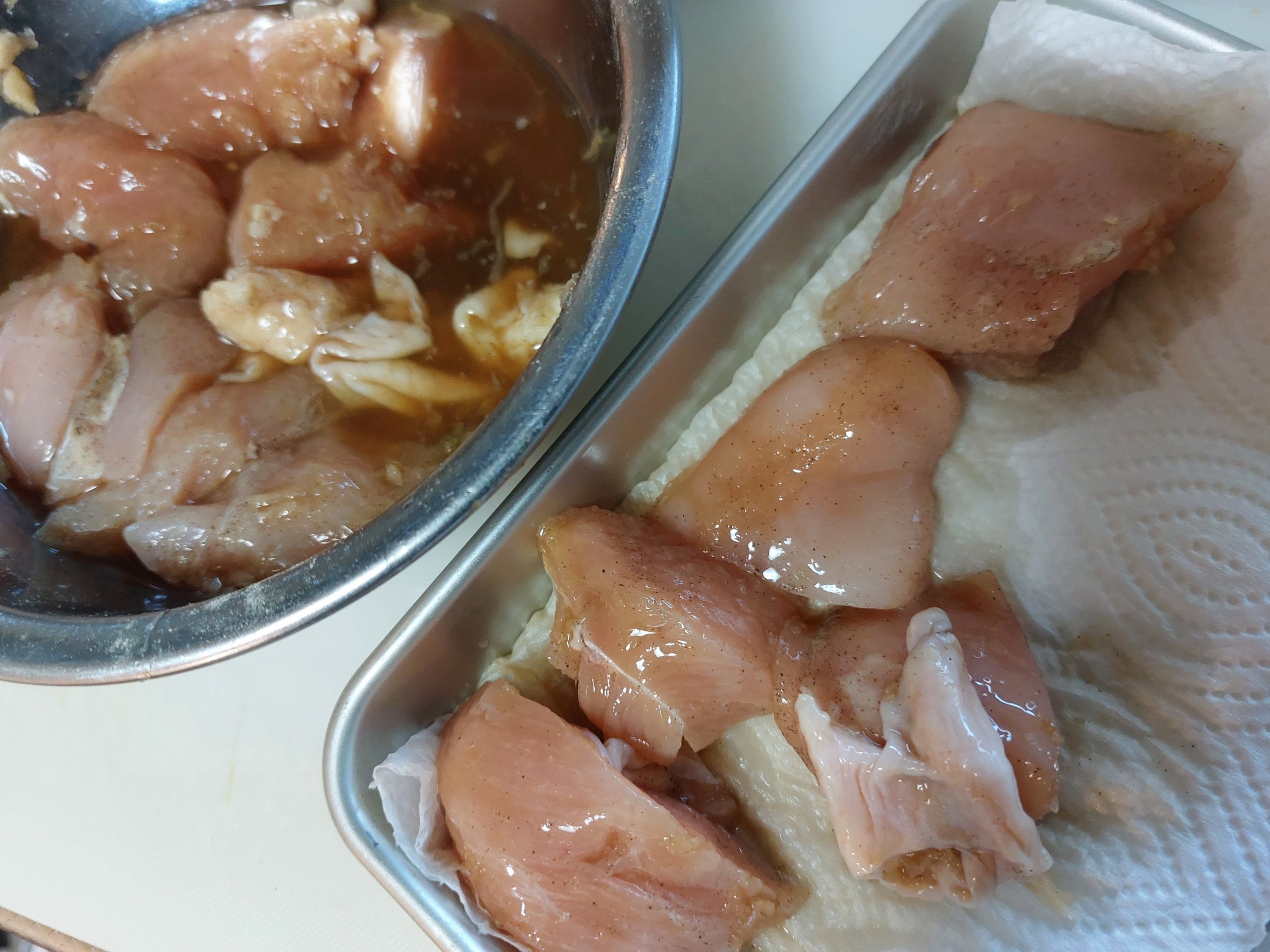 このとき鶏肉をキッチンペーパーに押し付けたりはしないように注意してください。