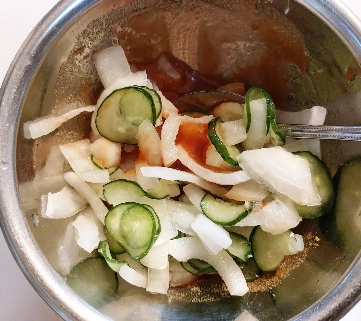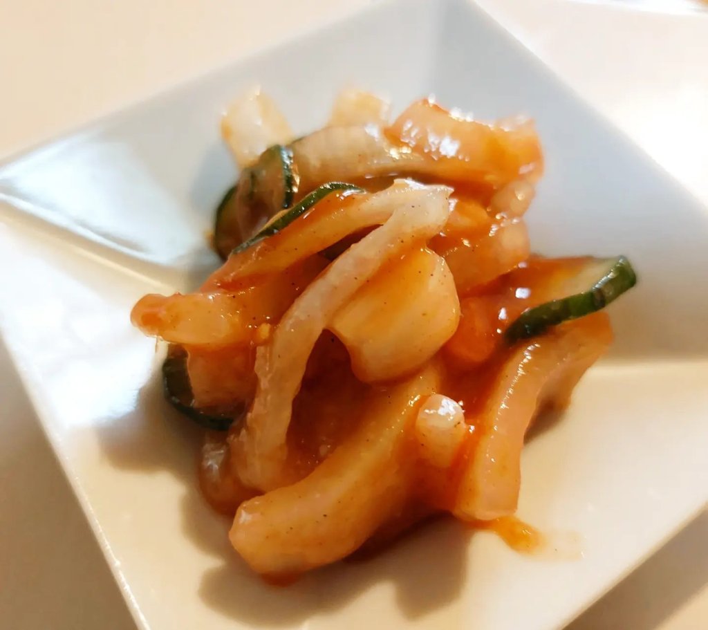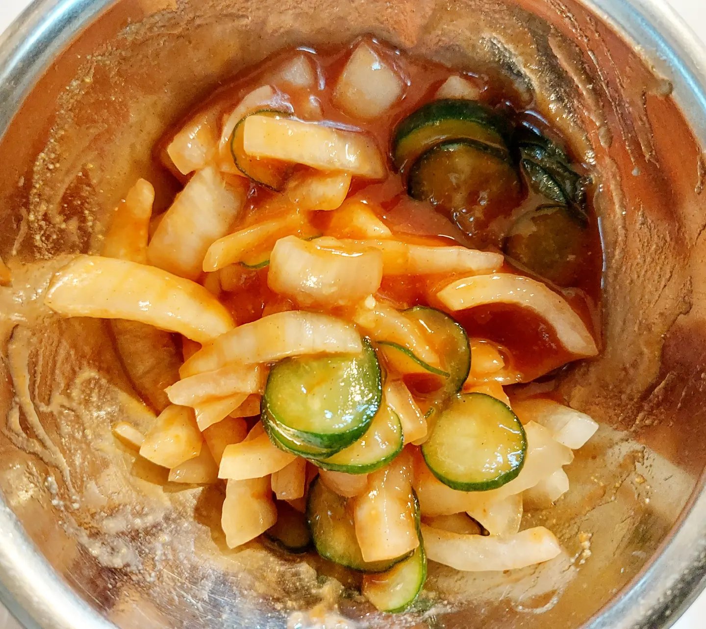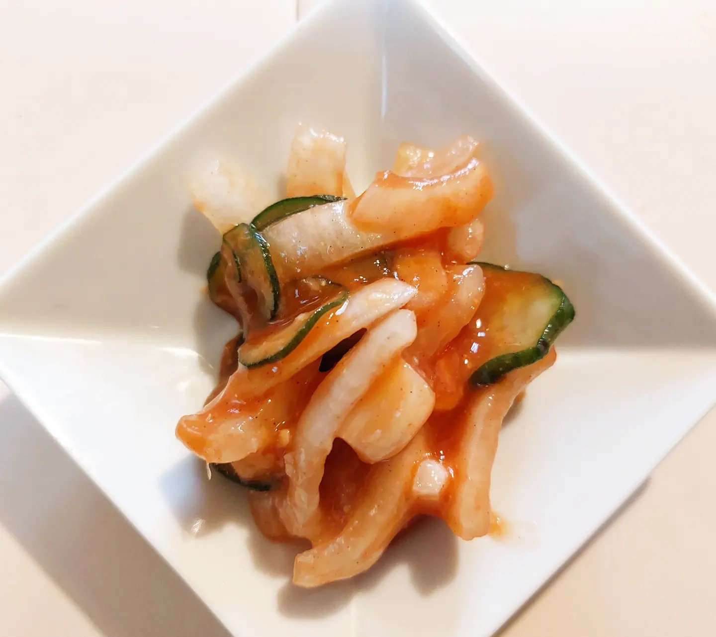 スパイス13種モニタープレゼントのスパイスで作ったスパイスカレーに合わせて、スパイスをきかせてお漬物“アチャール”を作ってみました。