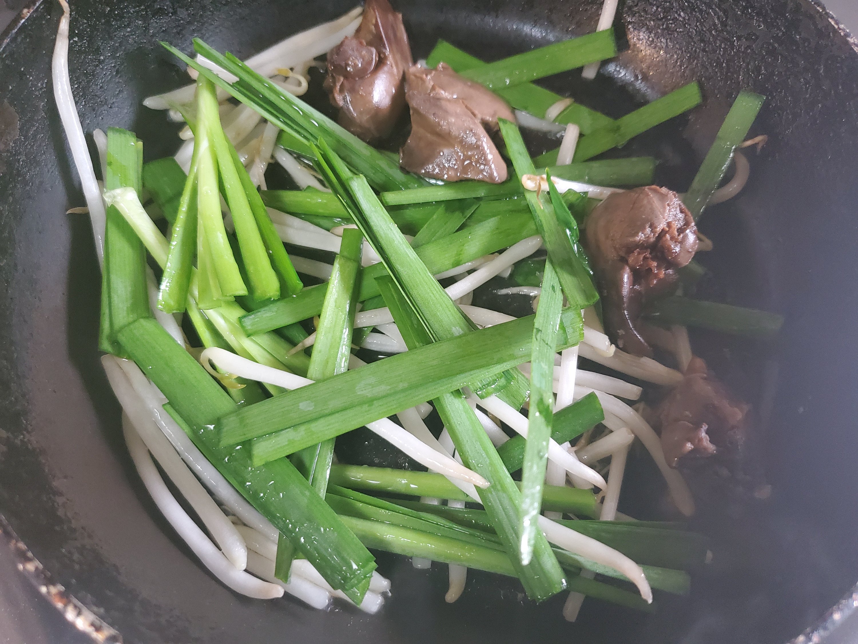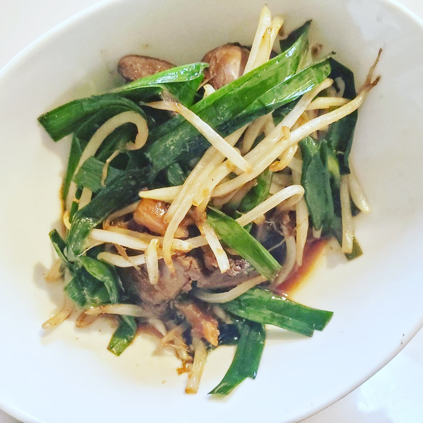 もやしの食感。ニラの香りがレバーの味を引き立てて、ご飯の進むひと品になりました。