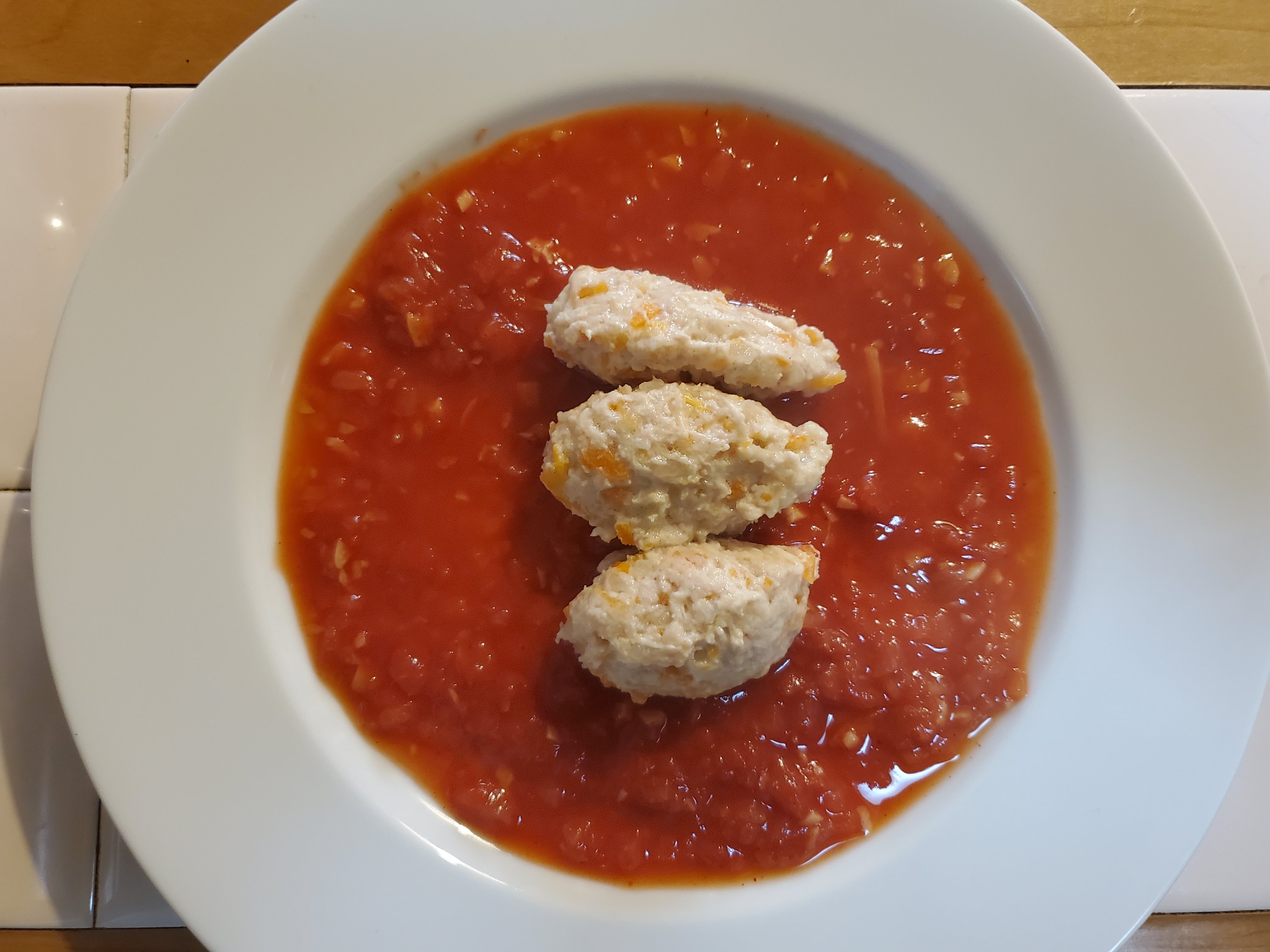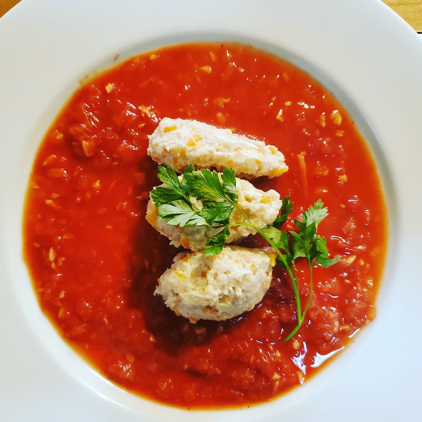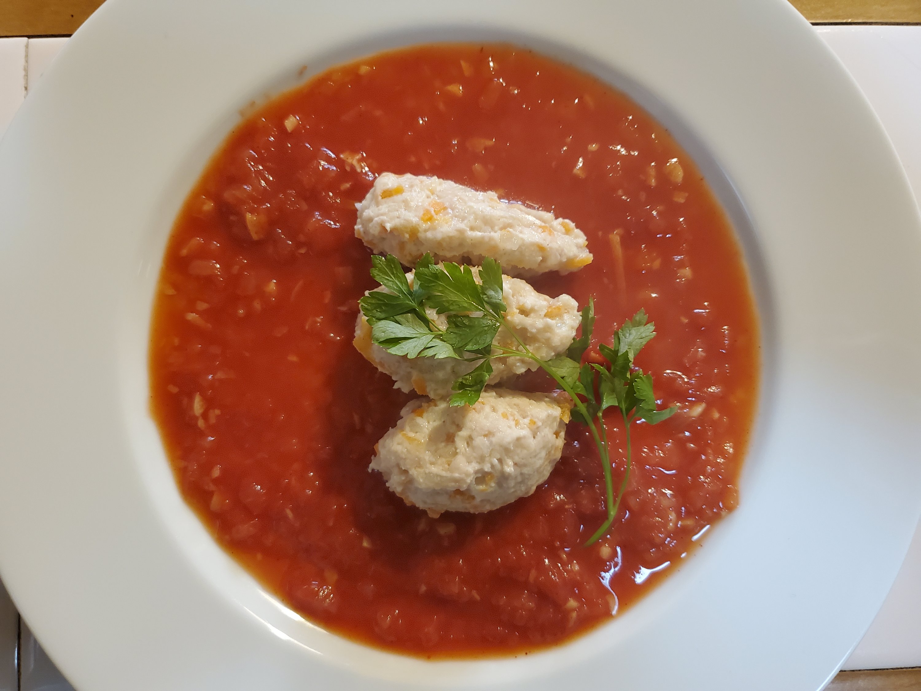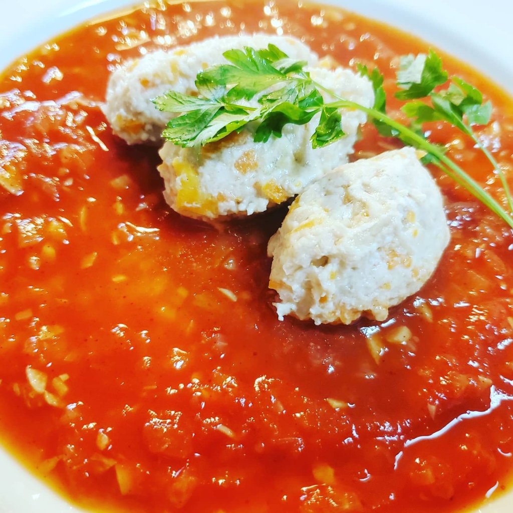 本来は川魚で作る料理のようですが、いまはお肉を使うことも定番化していて、コンソメスープの浮き身的に出てくることが多いように思います。