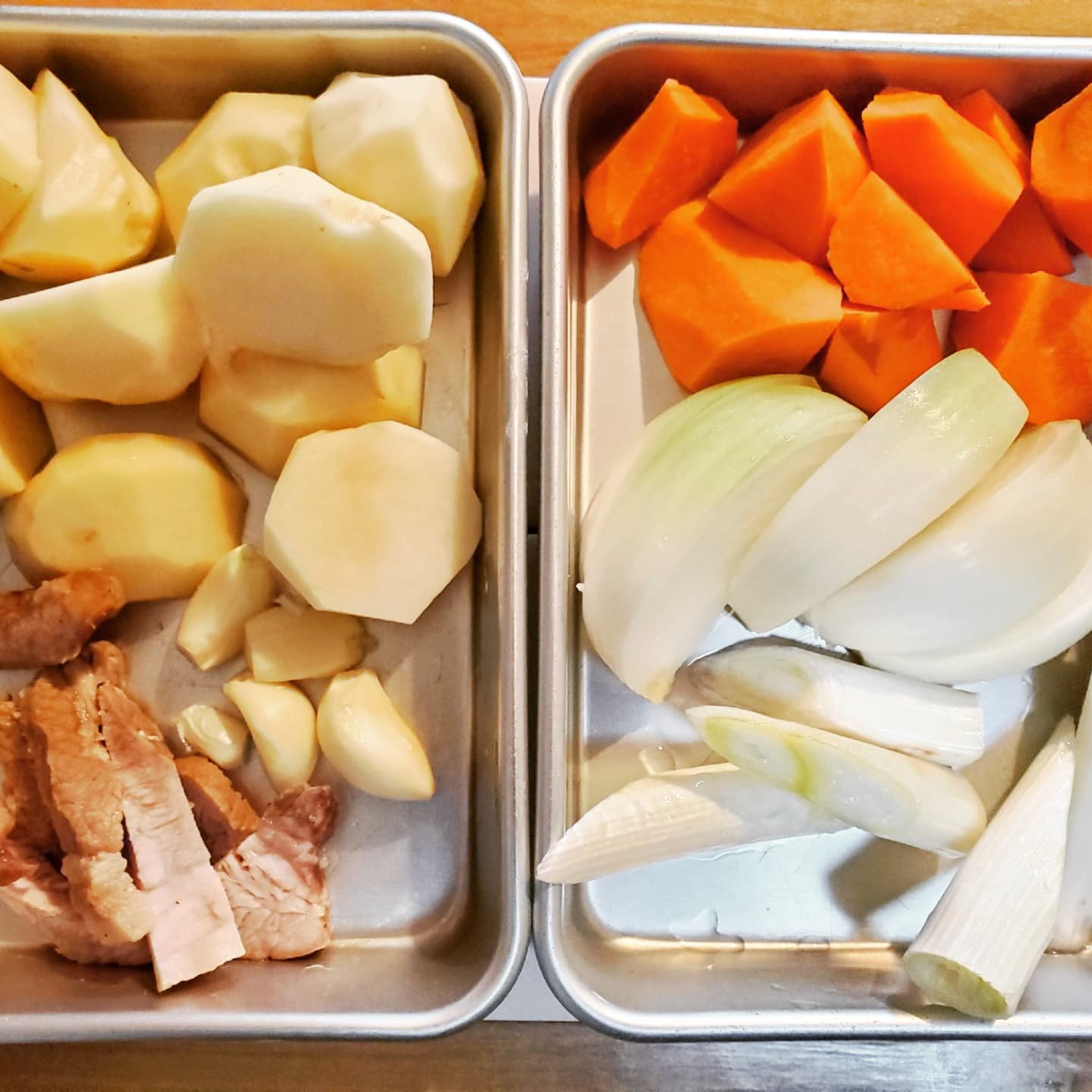 手間抜きといいつつ、肉じゃがの牛肉や豚肉の細切れをチャーシューに変えただけで、調理工程はまさに肉じゃがそのものだし意外と手間じゃん…と思われるかもしれませんが、最大のポイントがあるんです。
