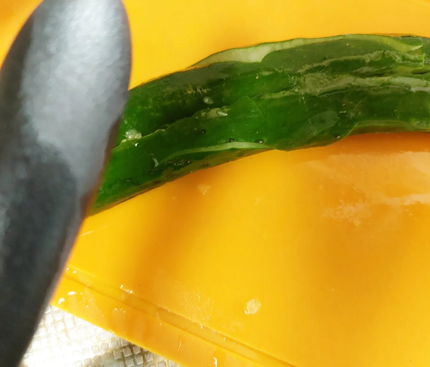 軽くつぶしておくことで断面から味が染みやすくなるのがポイントです。