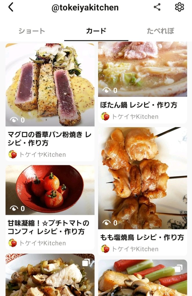 動画メインのサービスですが、レシピカードというスタイルもありまして、トケイヤkitchenはそちらで参加させていただいています。