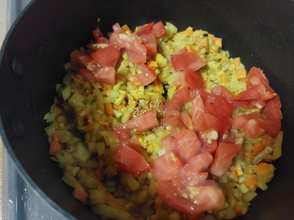 野菜の水分で煮込んだら、爽やかで旨味たっぷりの無水カレーの完成です🍅😋🍛