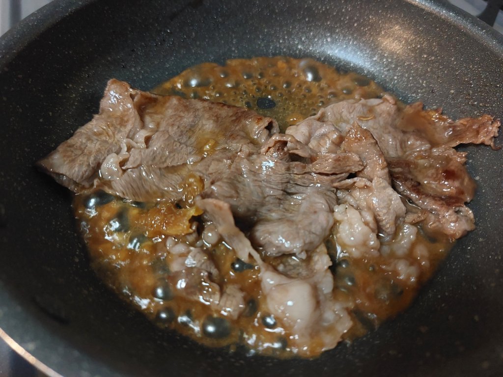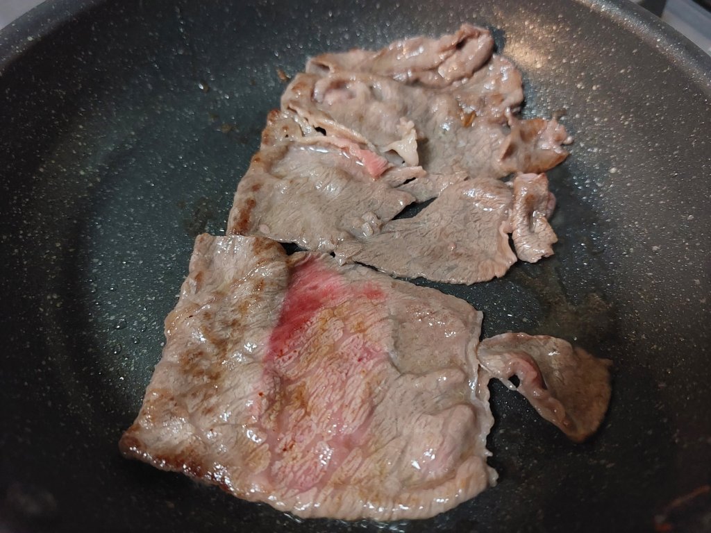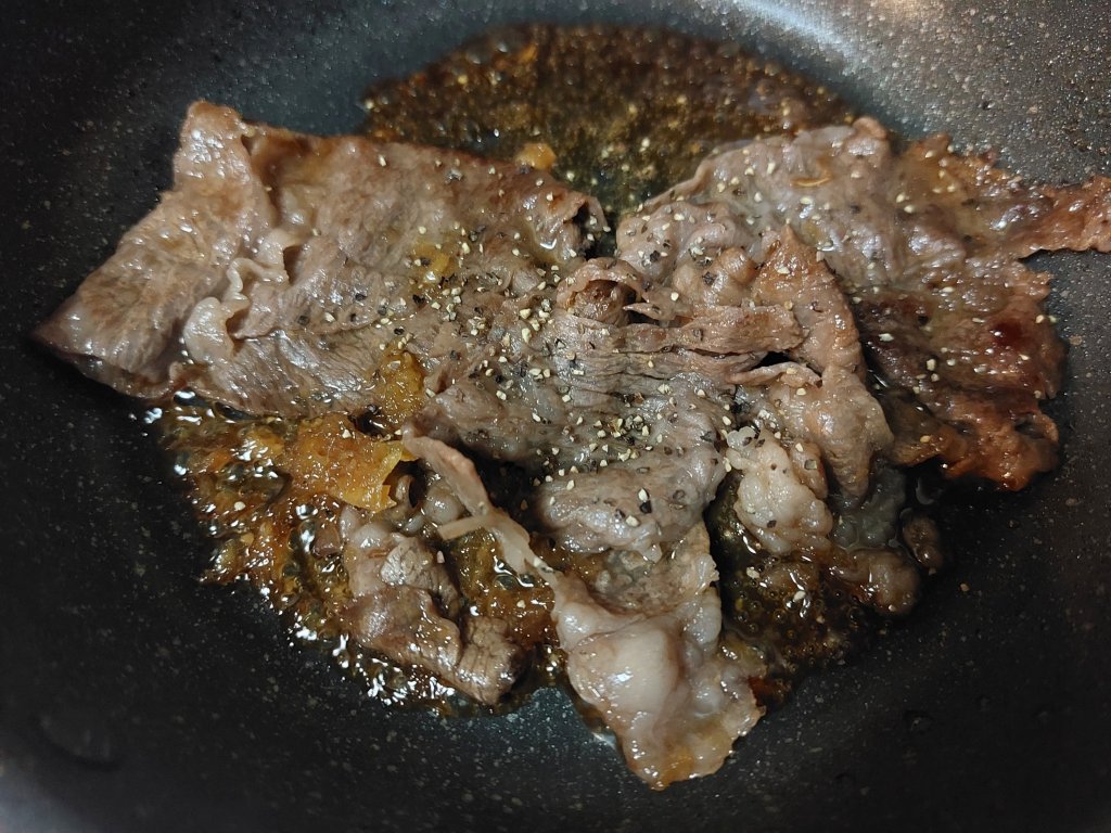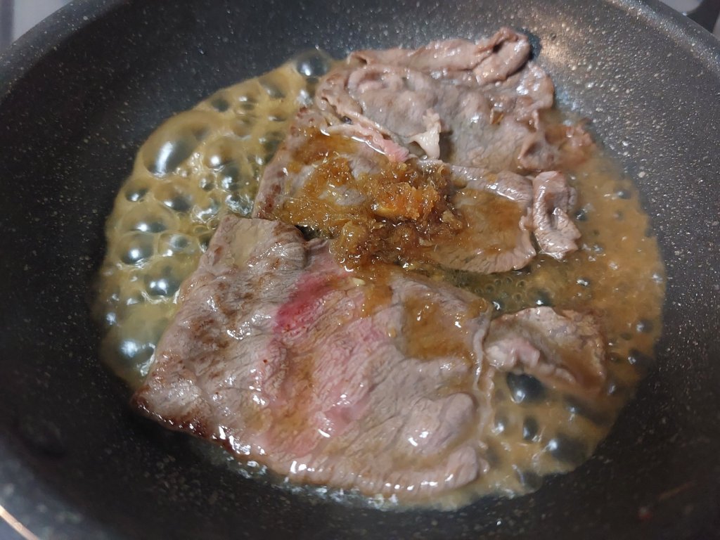 長崎県佐世保のご当地グルメ的な料理らしいのですが、ステーキといっても薄切りのお肉を使う個性的なひと品です。