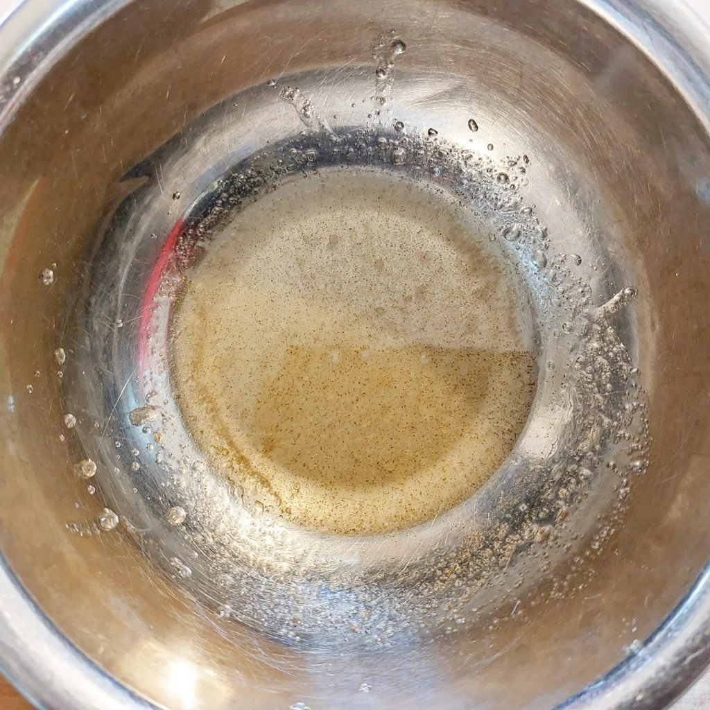 ビーター(泡だて器)を下から上に回すように攪拌します。