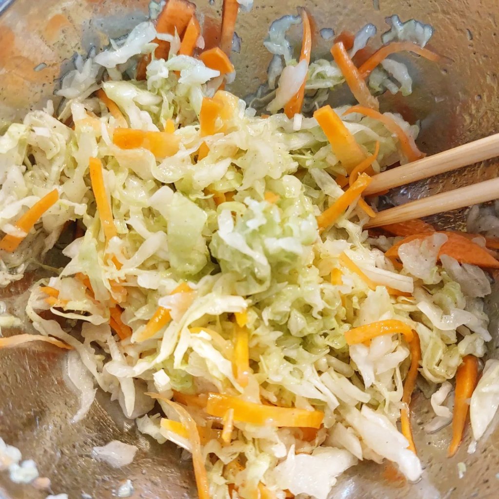 そのまま千切りにしてマヨネーズをたっぷりかけるのも好きですが、シンプルなコールスローサラダも美味しなと思います。