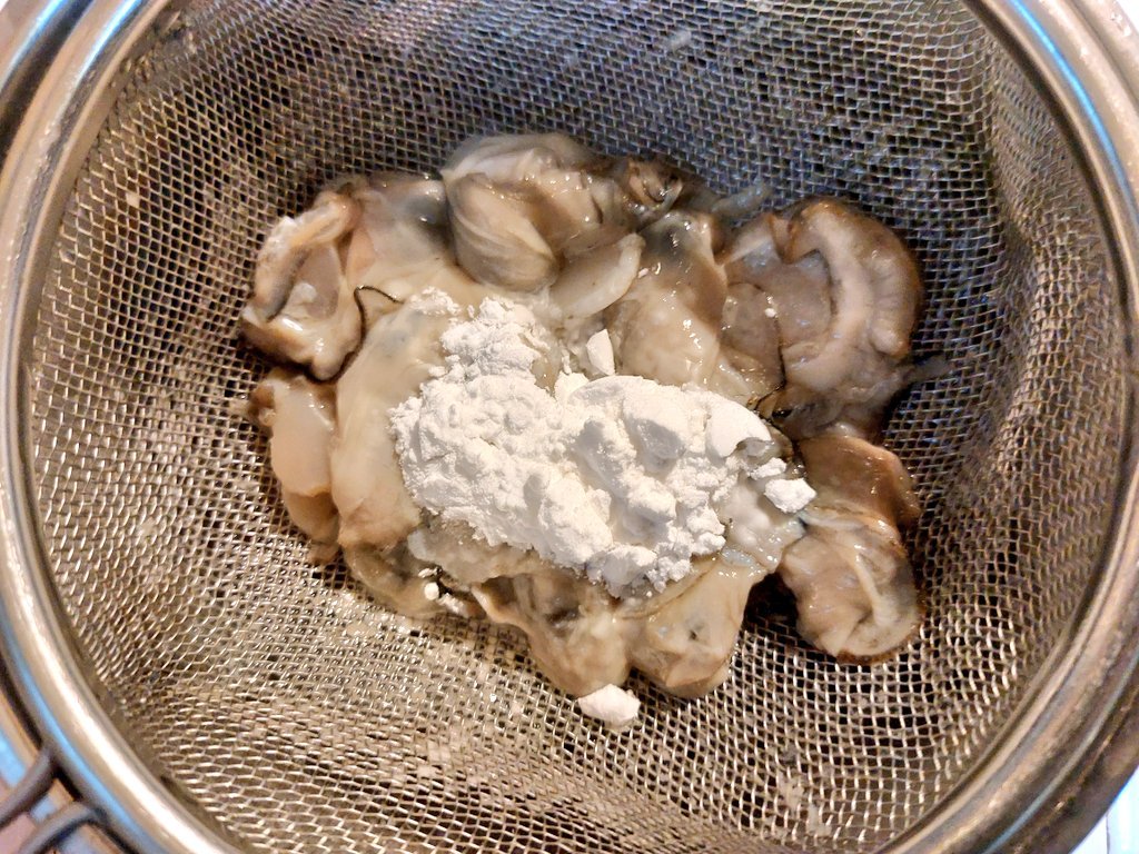 ソースができたらカキの準備です。