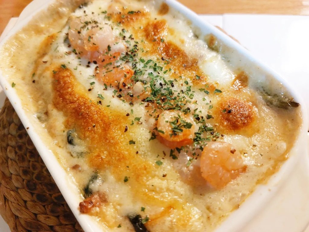ホワイトソースにチーズを載せたら、アツアツハフハフで、体の芯から温まる気がします。