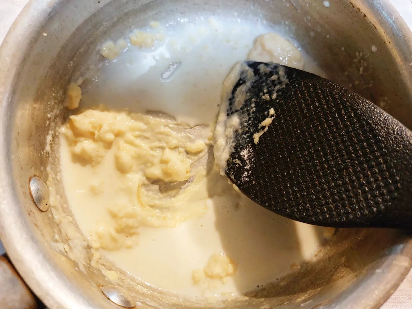 ホワイトソースというと、ダマが心配ですが、ここからがうまく作るポイント。