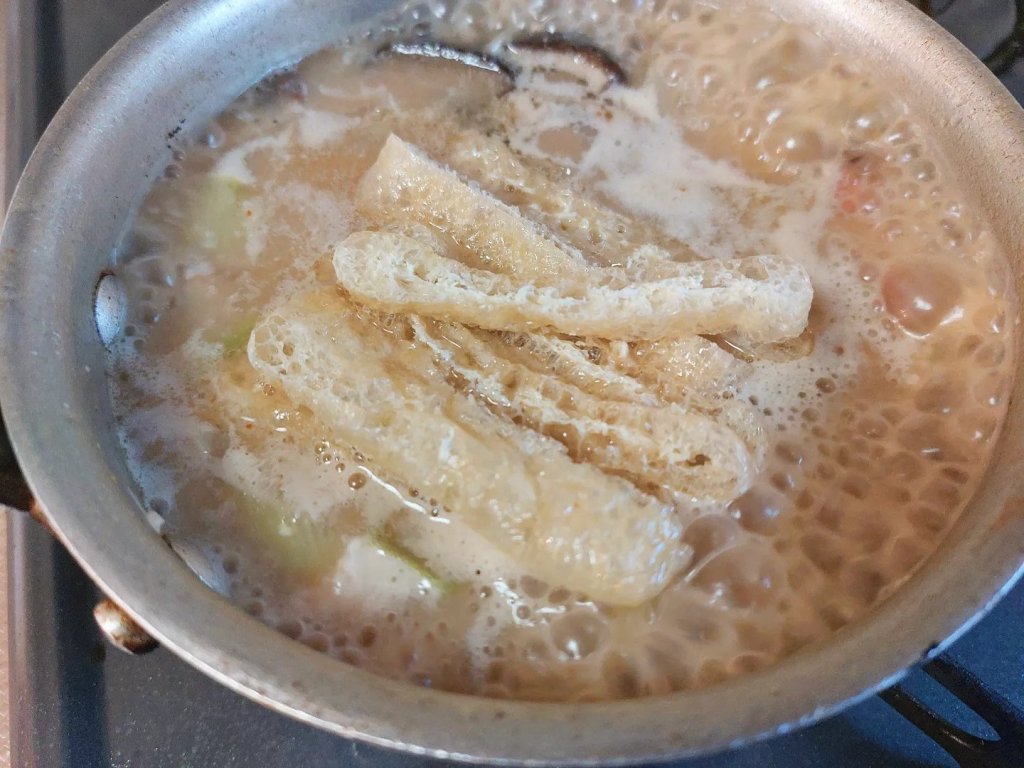 干し椎茸に、今回は甘辛く煮たひき肉のそぼろとこんにゃくも準備。