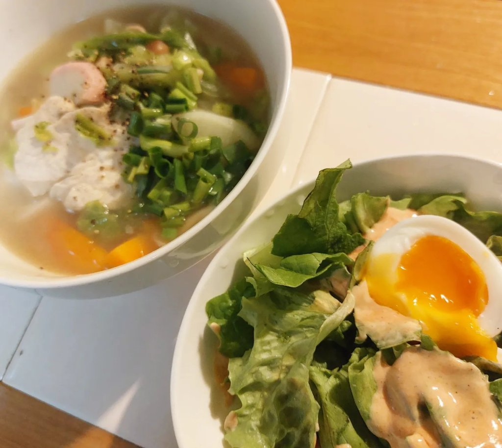 和風のお出汁より食べ応えがあって、麺なしラーメンみたいな感じに仕上がりました。