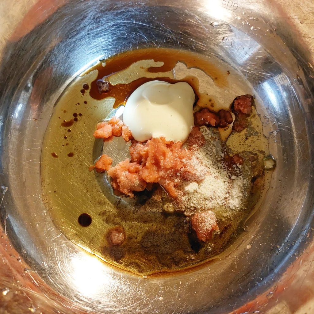 バターを加えて余熱で溶かしつつ、よく混ぜます。