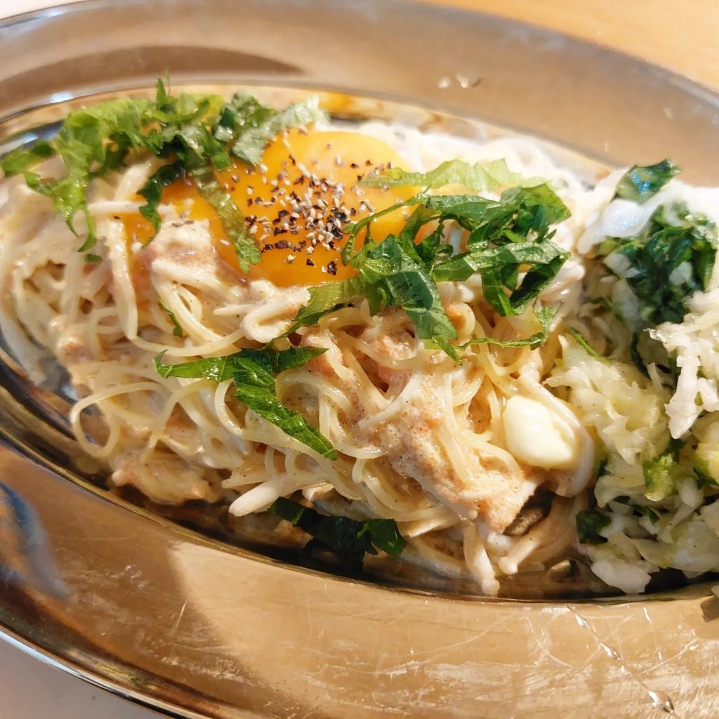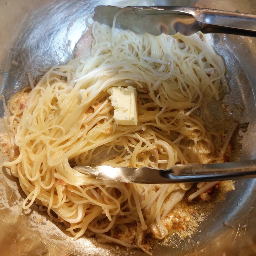 パスタはお気に入りの細麺、カッペリーニを使いました。細いとよくソースにからむんですよね。