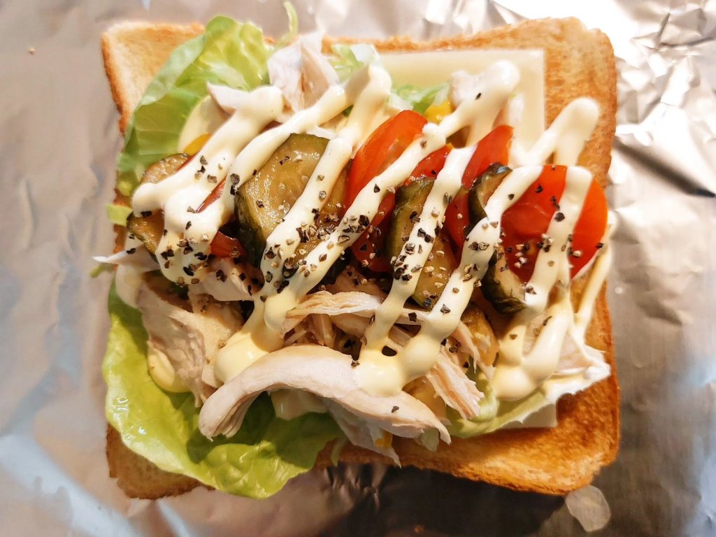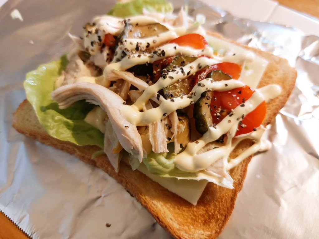 たっぷりこしょうを振って、モーニングおかずトーストできあがりです🙌