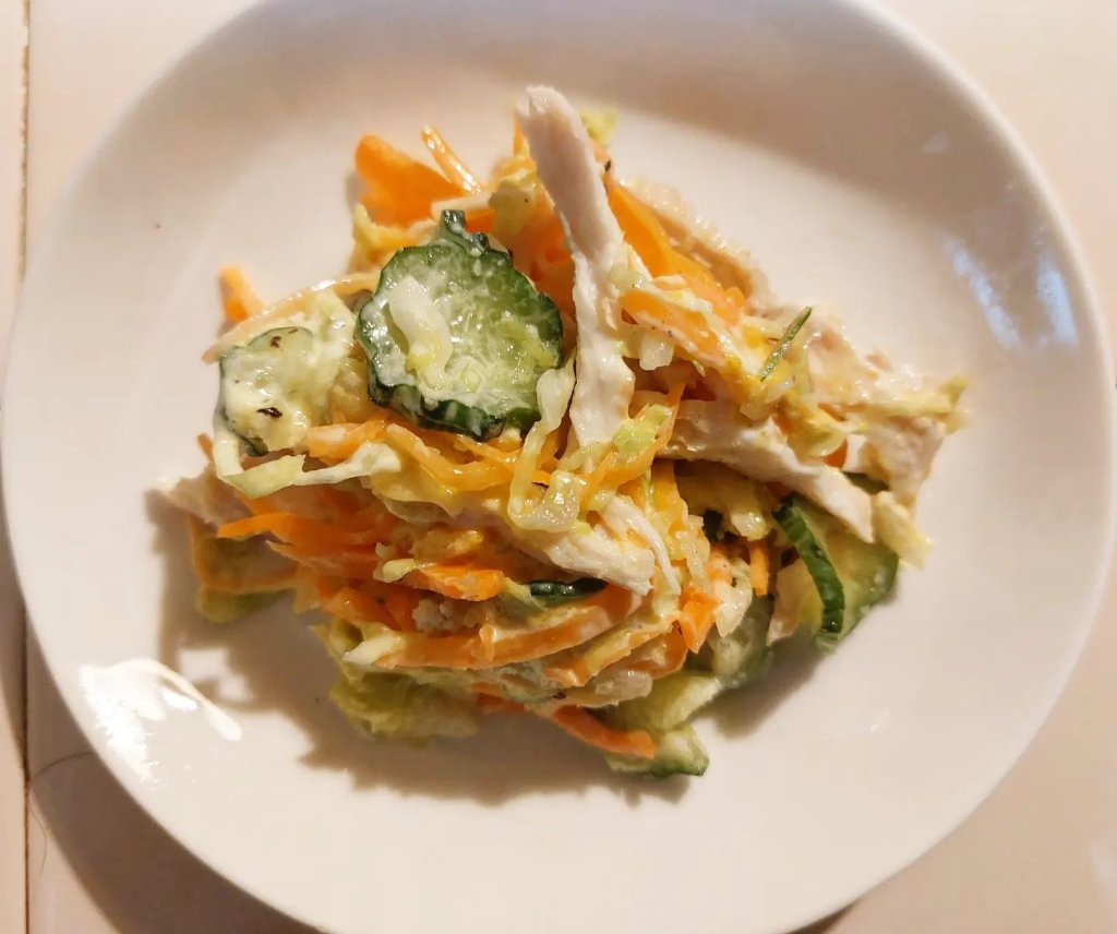 千切りにしたキャベツを塩でもんで絞って、味付けするシンプルなサラダですが、今回はちょっとアレンジ。