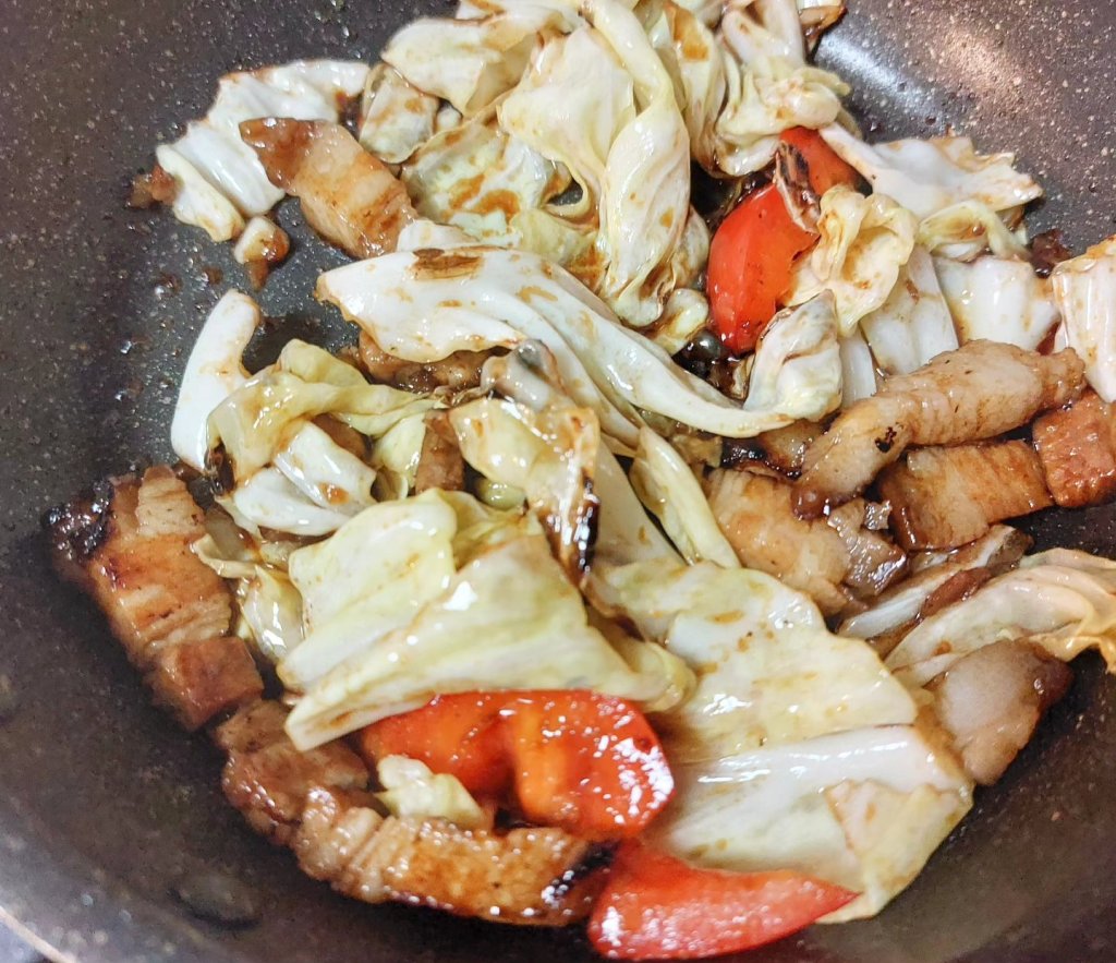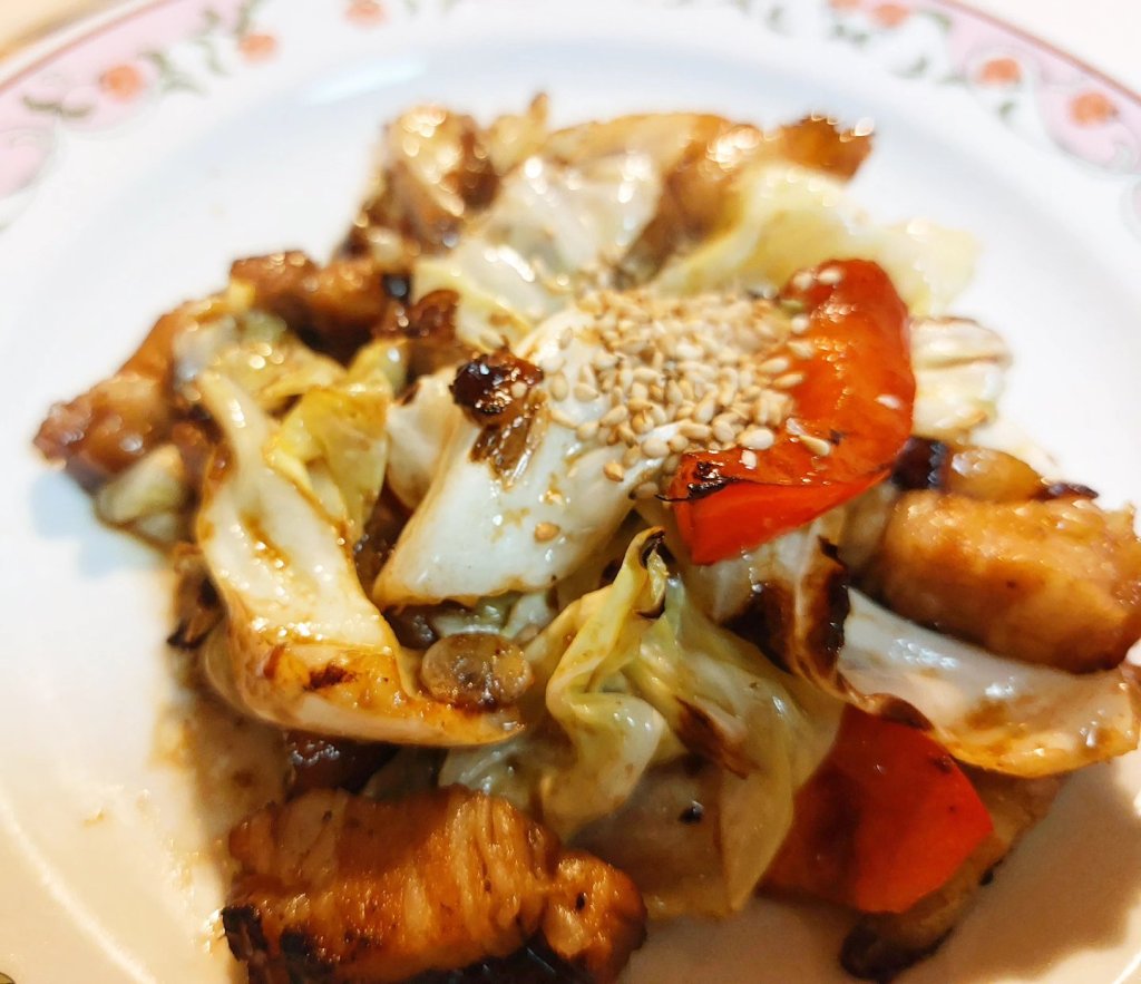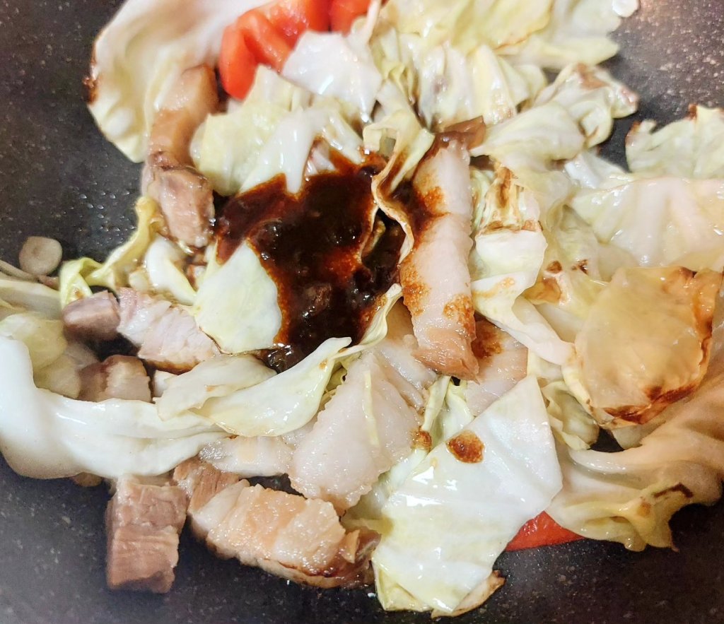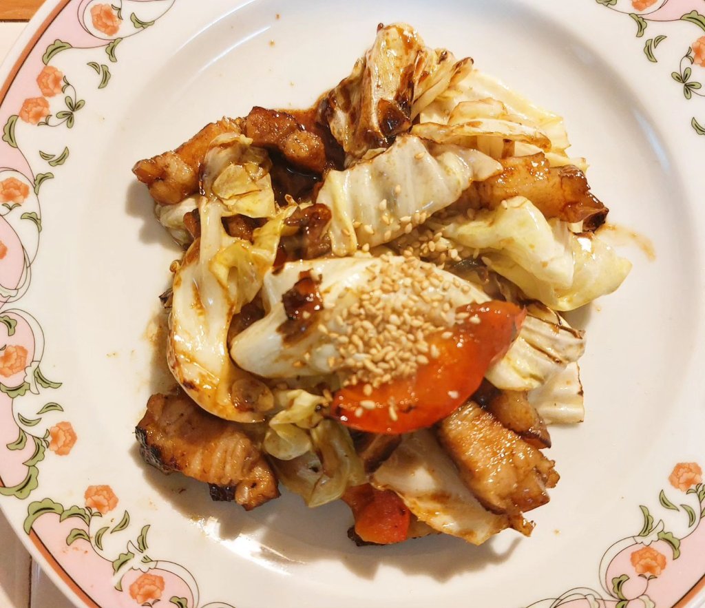 こんがり焼けたキャベツの香ばしい香りと、甘い中華味噌の風味が美味しくて、ビールが進みます🍺😋