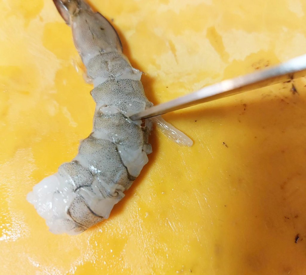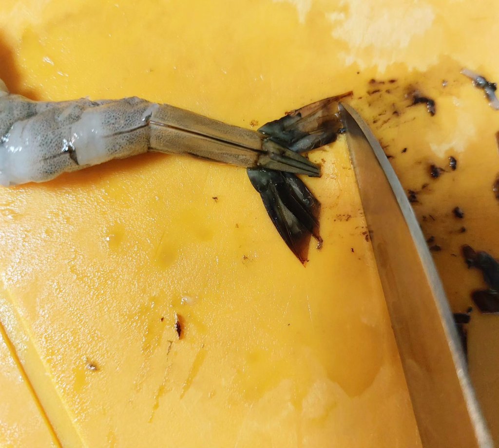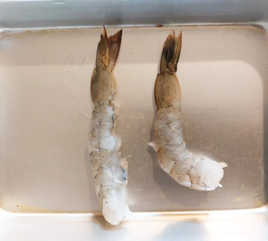 右は何もしていないエビ。